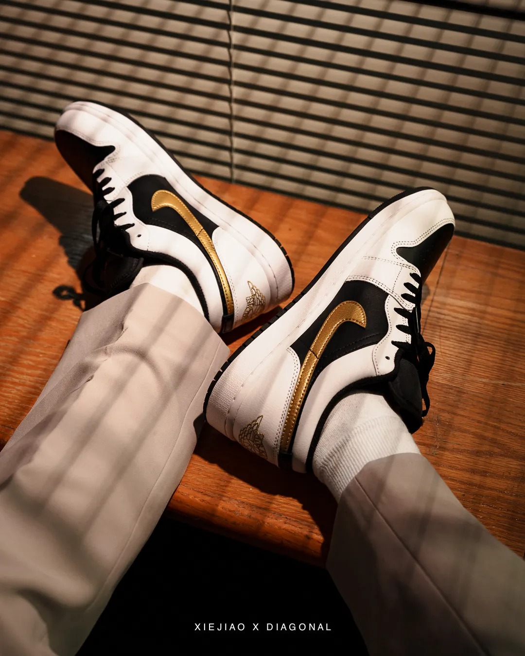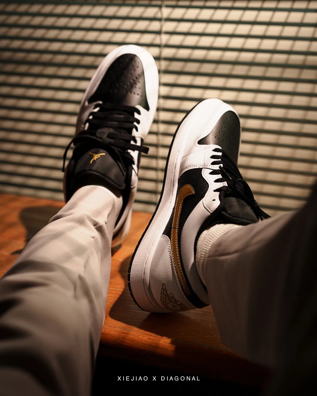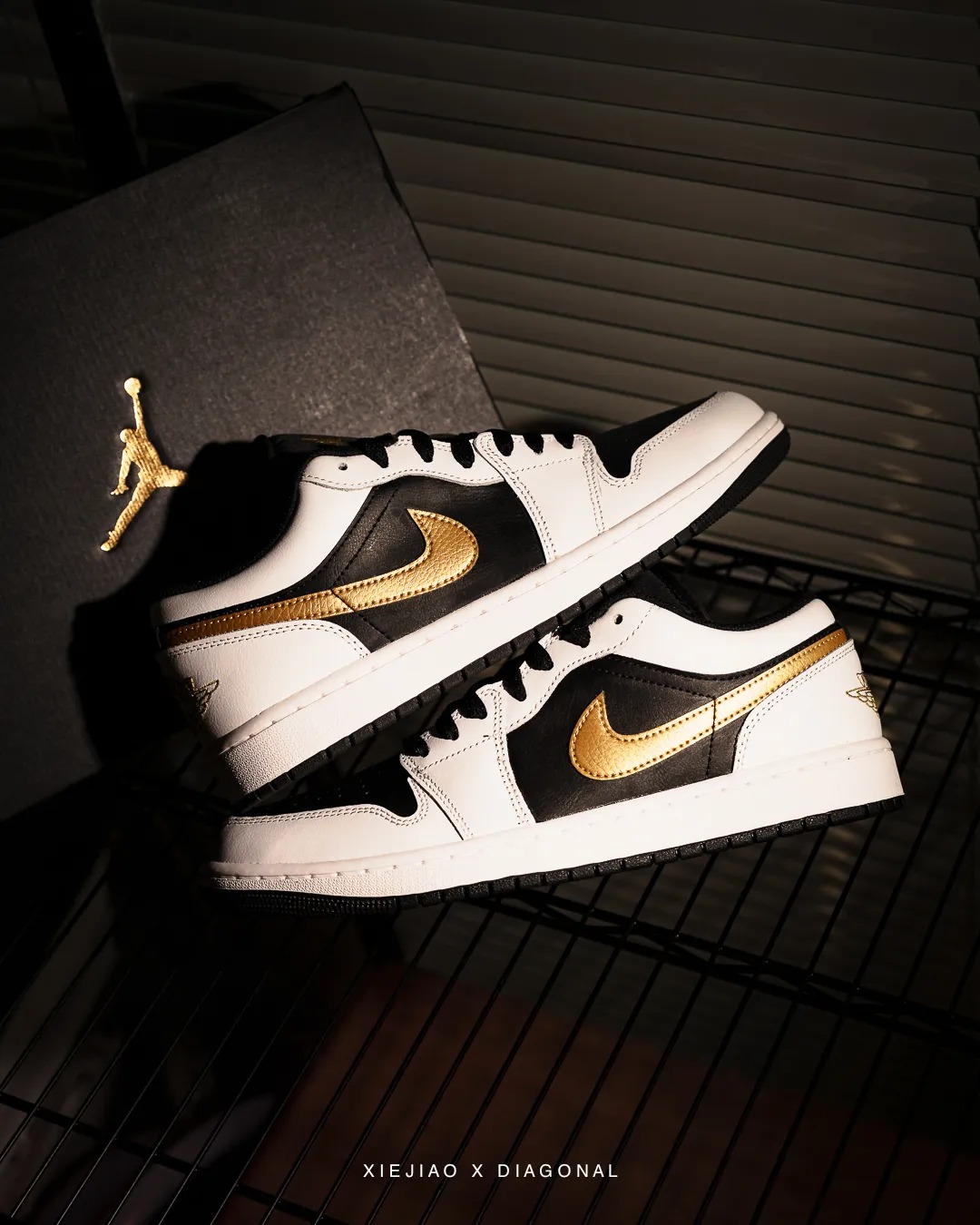 鞋教 Nike Air Jordan 1 Low "White Black Metallic Gold Swoosh" 黑金 反轉熊貓 553558-172