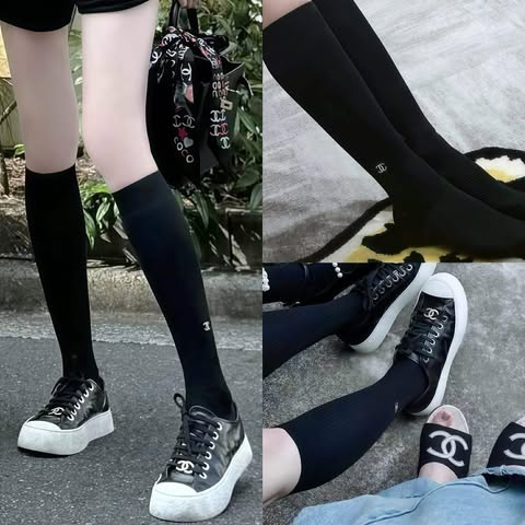 Chanel 黑色珍珠中筒襪