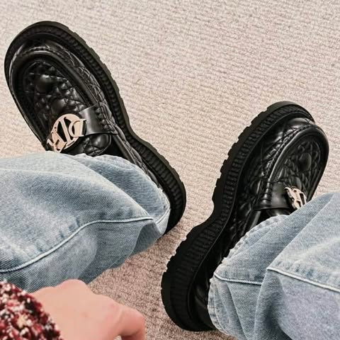 Dior 秀款黑銀字母騰紋樂福鞋
