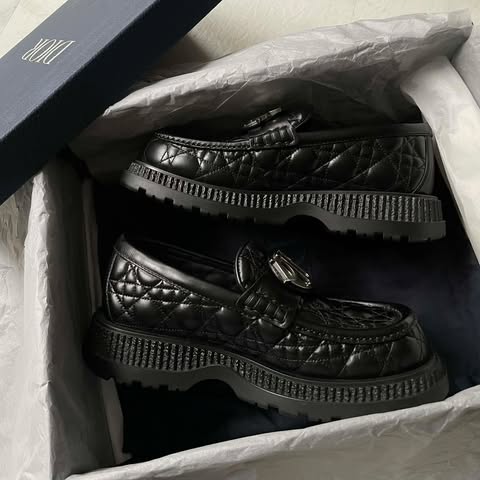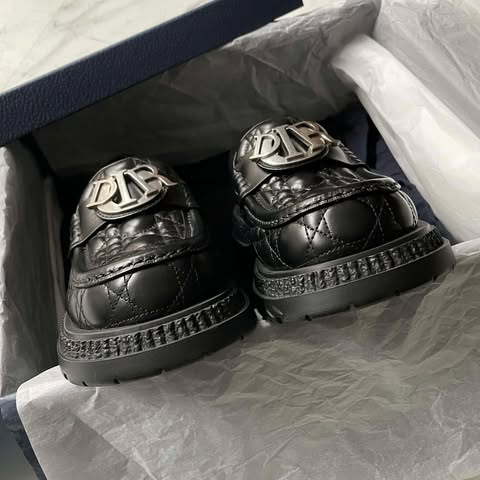 原價38000⚠️⚠️ Dior 秀款黑銀字母騰紋樂福鞋 閒置未使用 39碼配件有塵袋盒子