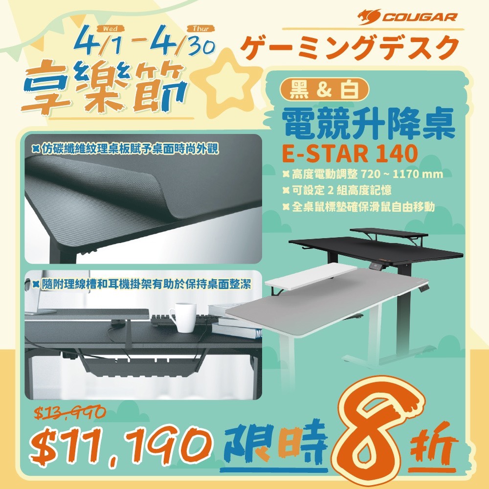 COUGAR 美洲獅 E-STAR 140 電動升降桌 電競桌 電腦桌 黑