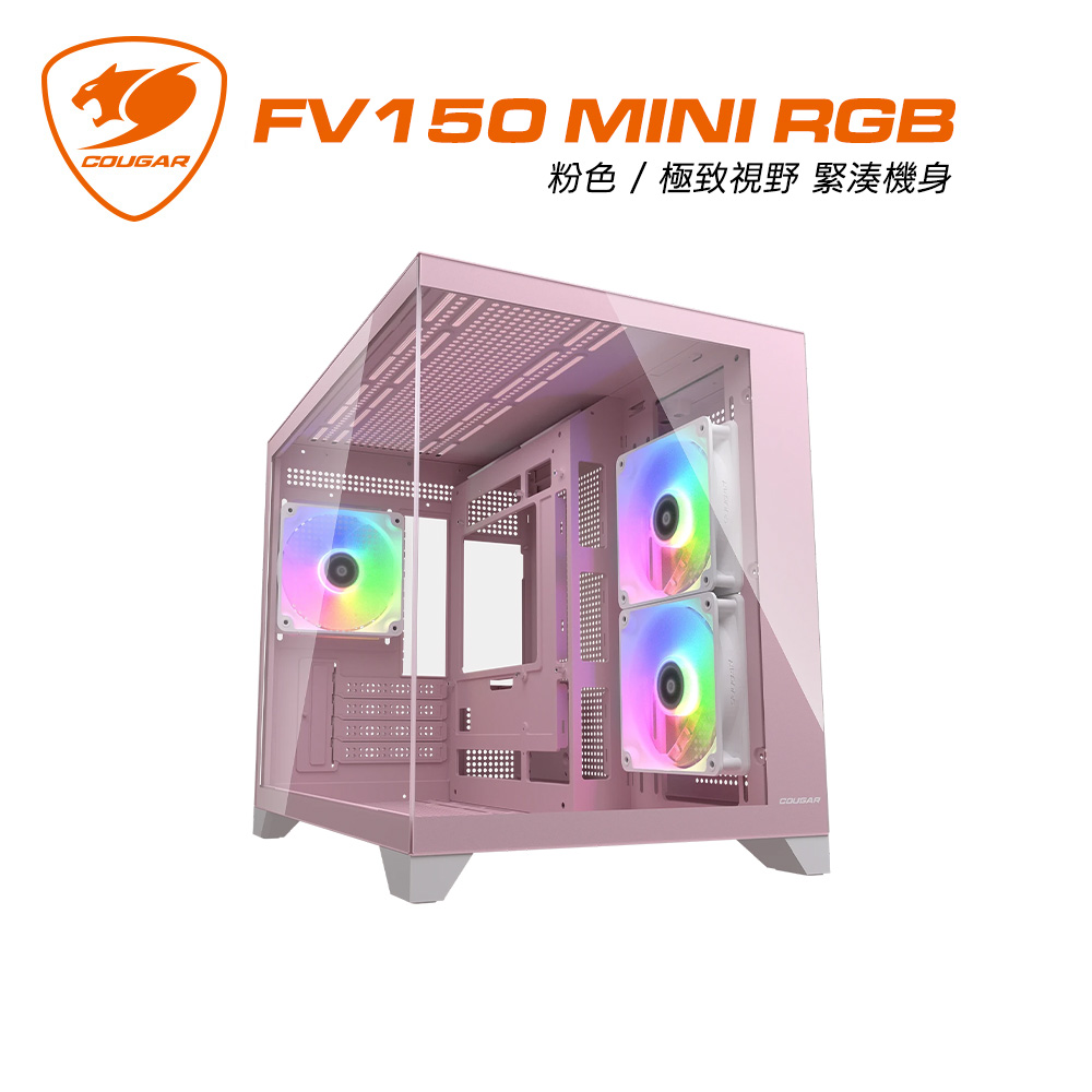 COUGAR 美洲獅 FV150 MINI RGB 雙艙電競機箱 粉色 M-ATX