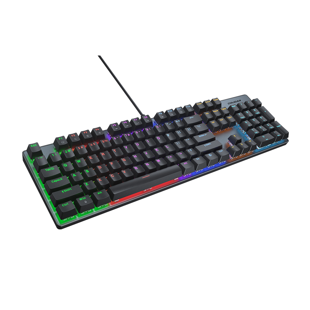 產品名稱按鍵種類防鬼鍵回報率背光燈效軟體連接裝置系統需求線材長度材質重量包裝尺寸(長x寬x高)尺寸(長x寬x高)包裝內容物規格COUGAR ULTIMUS EX 電競鍵盤機械軸(紅軸) (支援USB模式)1000Hz19 種背光效果 (內建快捷鍵)USB 接頭Win 10, Win 111.8m鋼塑膠998g437.3 x 128 x 39.7(mm)460x176 x 45 (mm)ULTIMUS EX 電競鍵盤使用者說明書