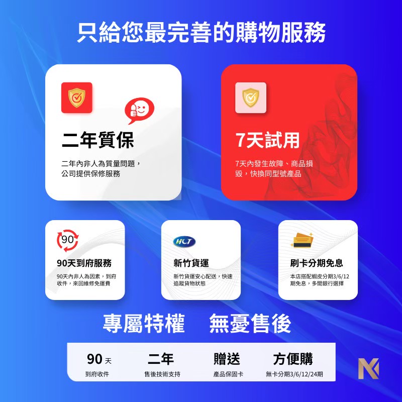 4.保固期間內,檢測維修一律免費外縣市維修/檢測所產生運費為各自負擔單趟運費,如剛購買主機90天內,非人為因素所產生不良之寄回運費,由本店承擔。