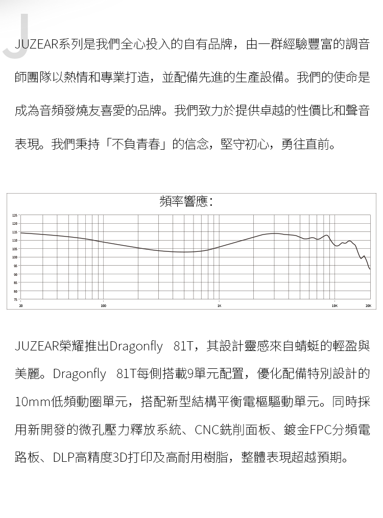 新竹立聲 | 匠音君子 JUZEAR Dragonfly 81T 蜻蜓 台灣公司貨 加贈 Spinfit W1