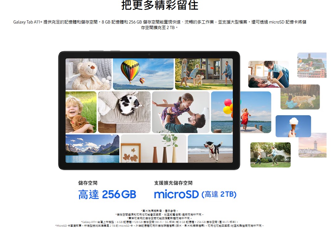 * 作業系統及預設應用程式將占用部分儲存空間,實際用戶可使用儲存空間將少於規格所標示的儲存空間容量。