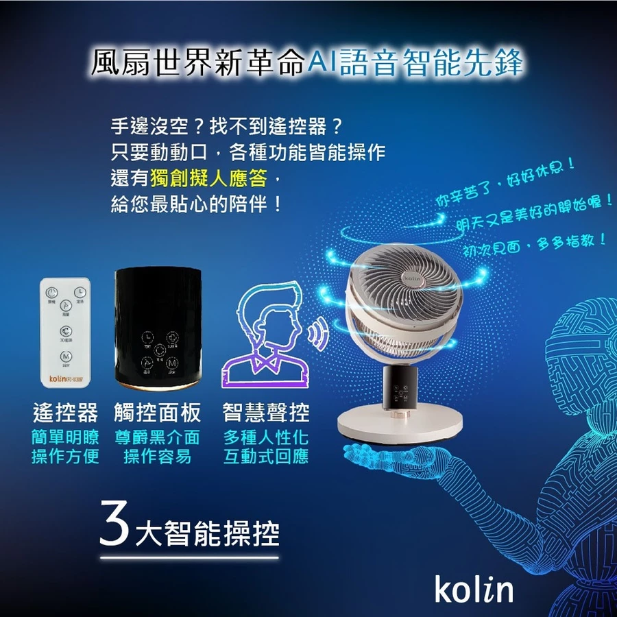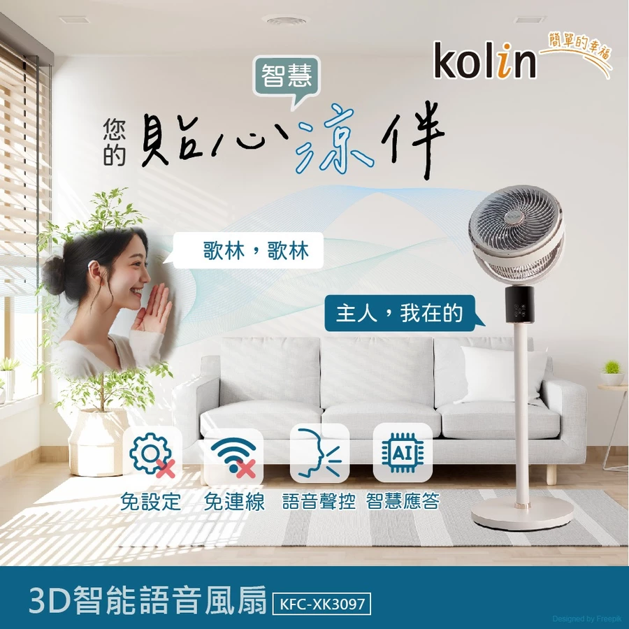 Kolin 歌林 金馬限定款AI極靜音智慧聲控循環扇(KFC-XK3097)