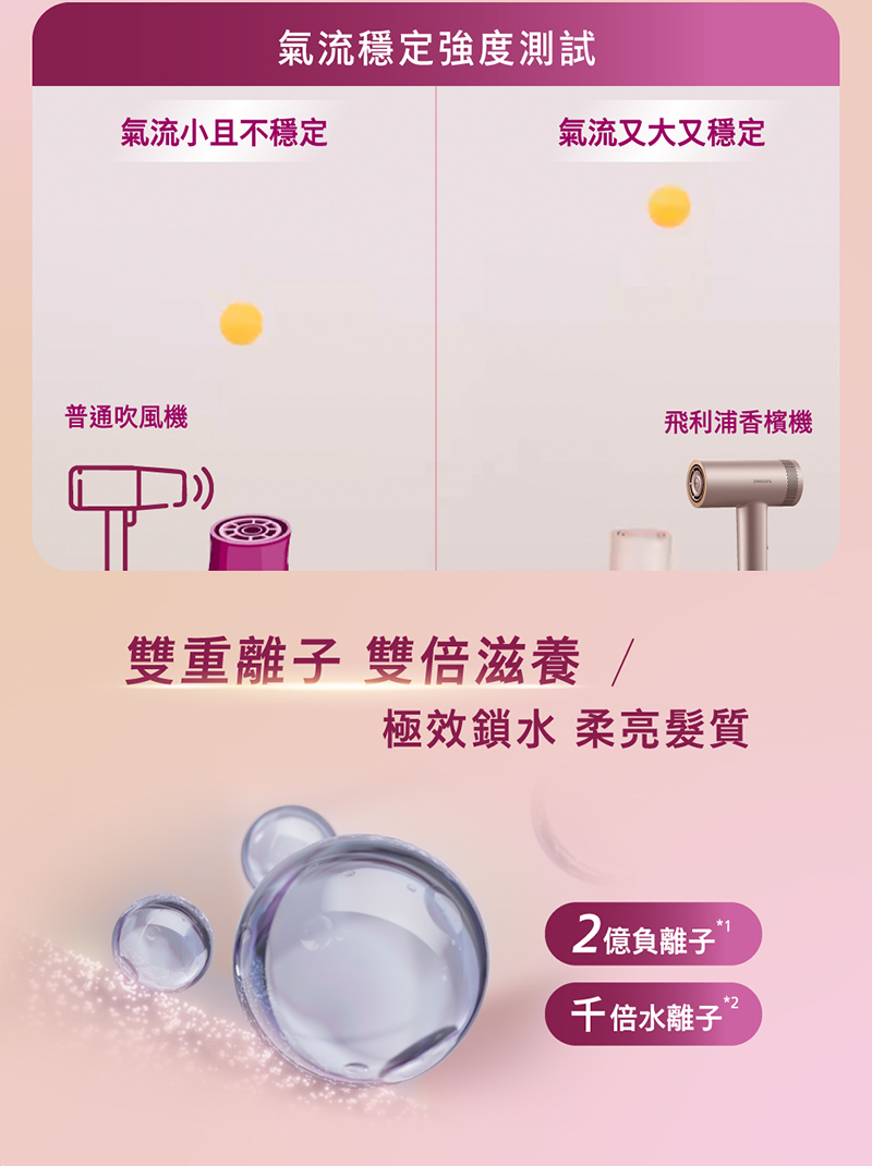 11萬轉高速馬達:強風瞬乾 2億負離子+千倍水離子