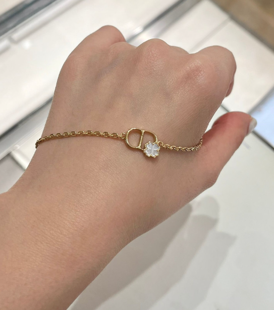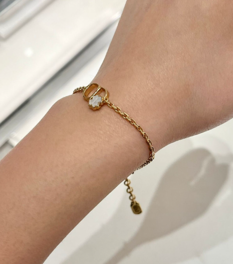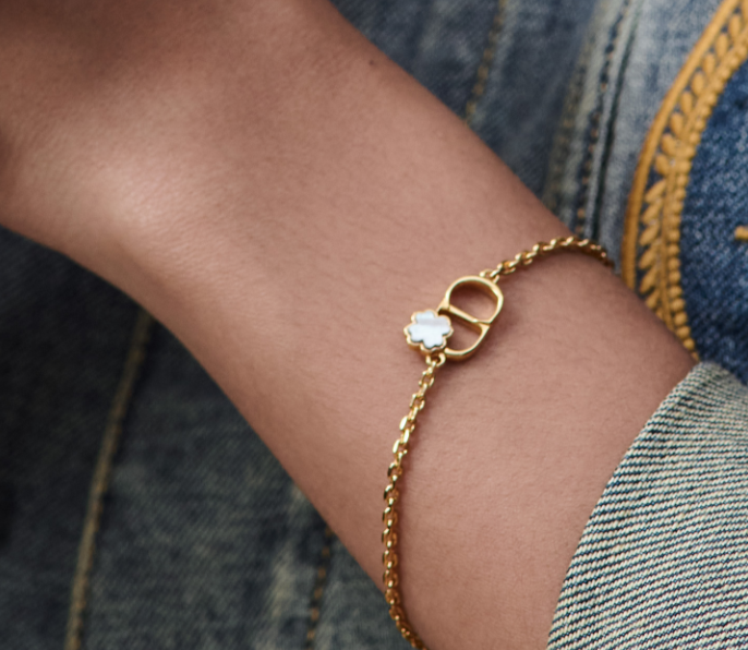 《在台現貨快速到貨 》Dior CD 金色飾面金屬和珍珠母貝 幸運草手鍊