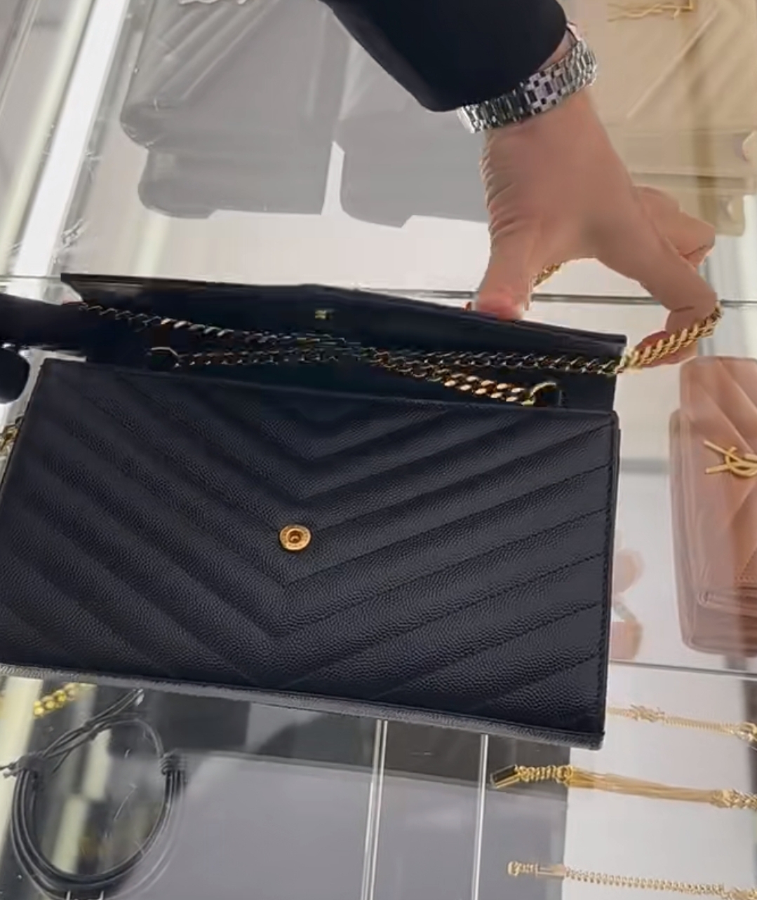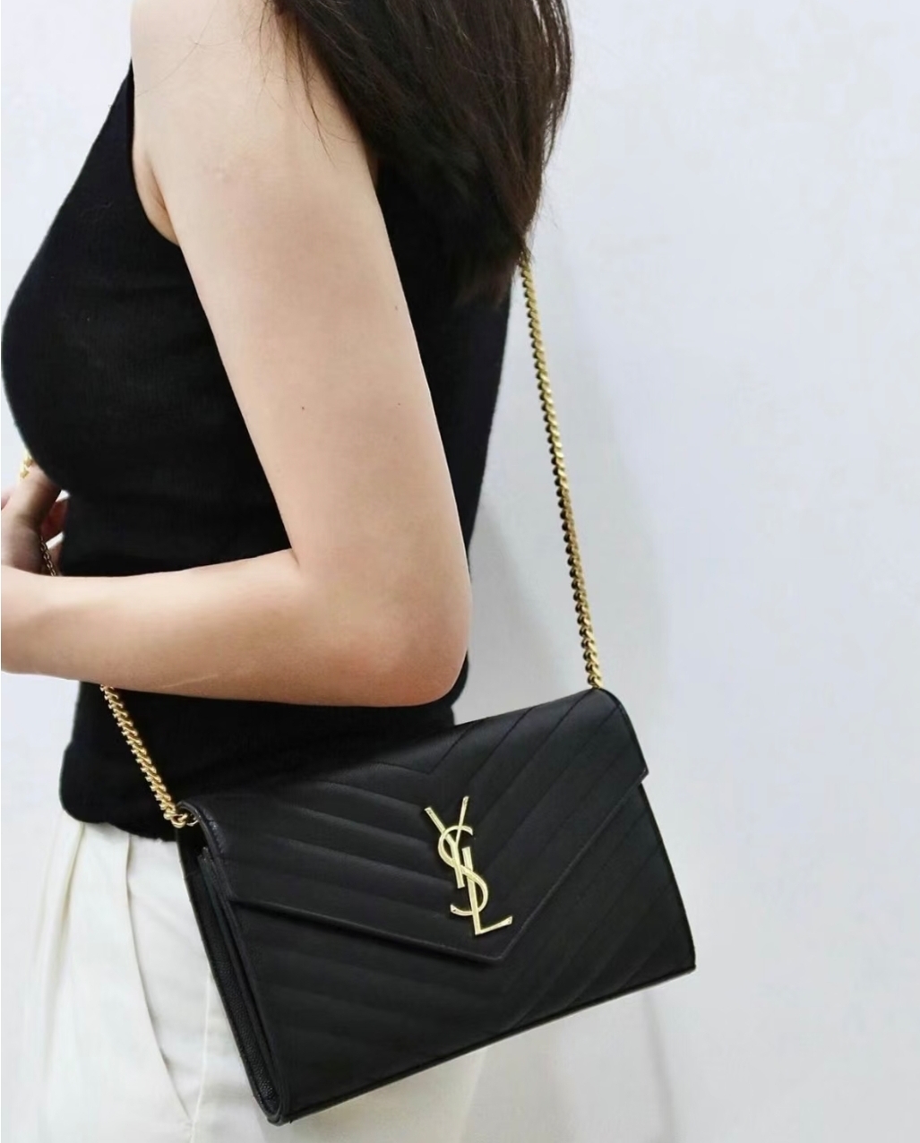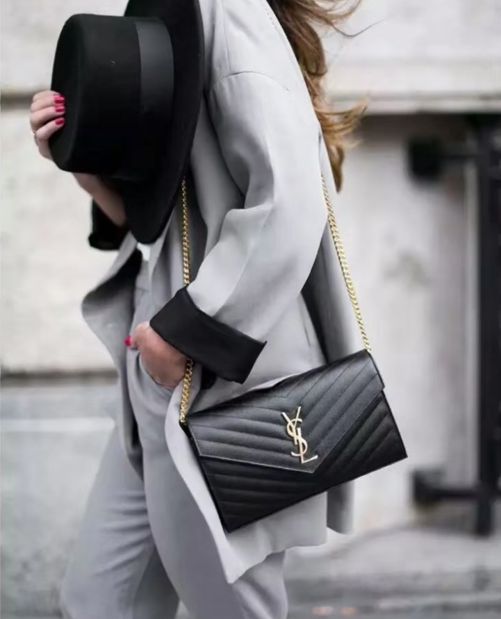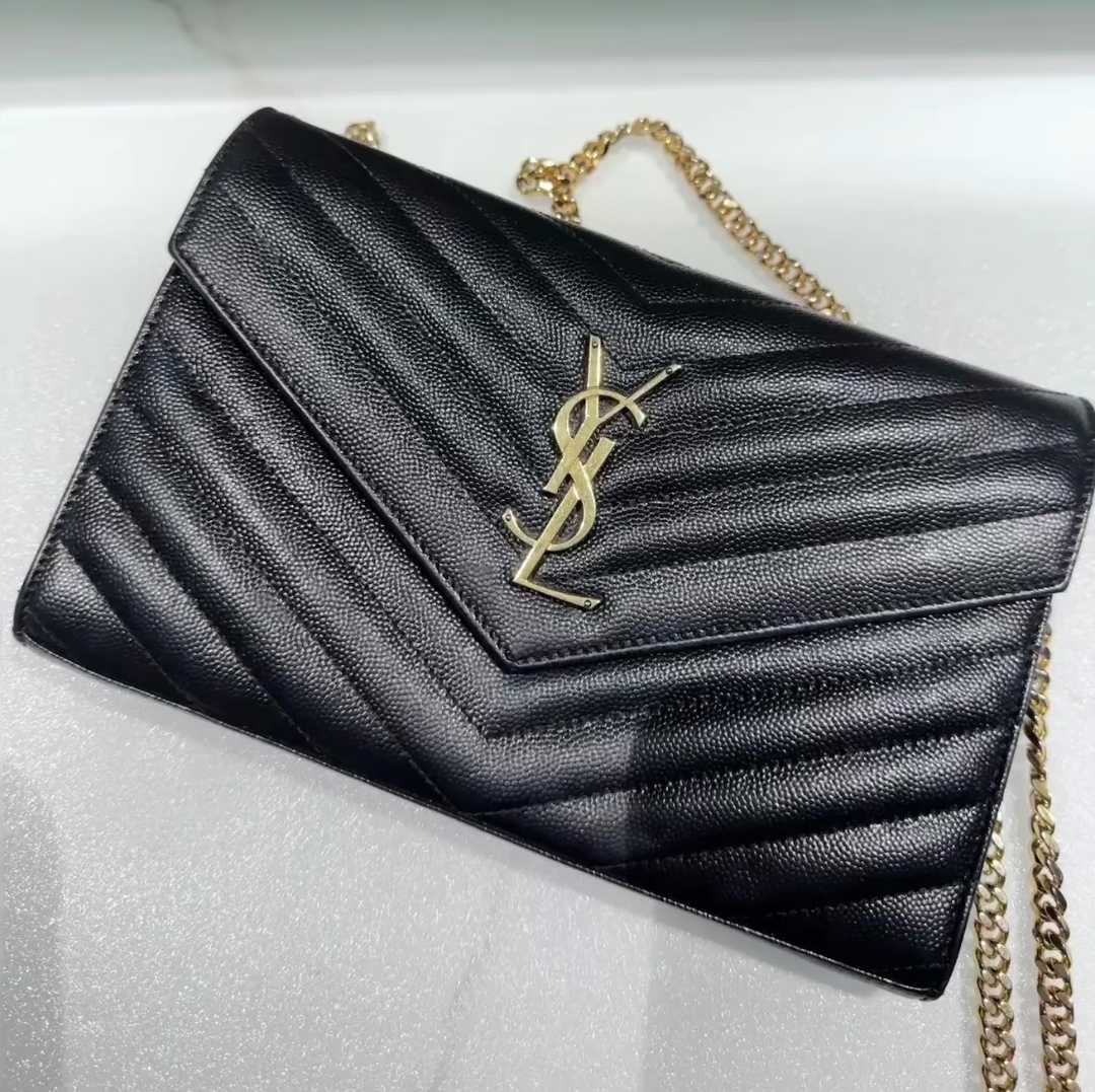 《在台現貨快速到貨 》Saint Laurent YSL 魚子醬鏈帶包 WOC 黑x金 大款