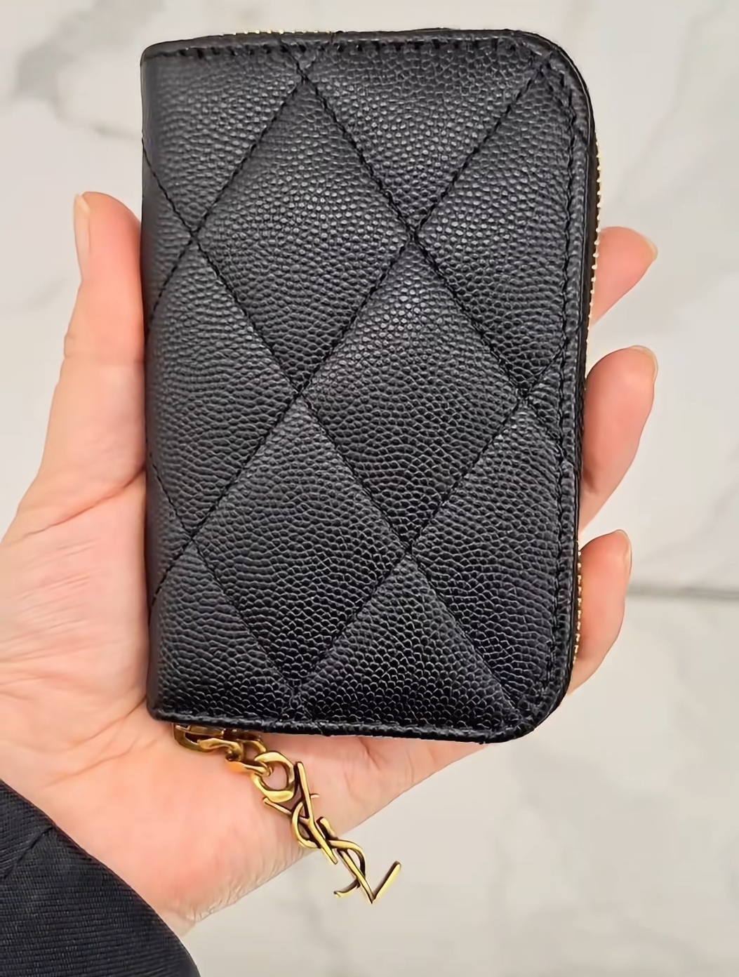 《在台現貨最低特價 最新》 Saint Laurent YSL 菱格紋拉鍊短夾