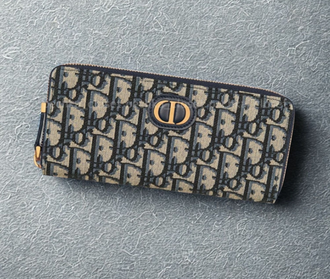 30 Montaigne Voyageur 薄款錢包設計簡約優雅,是您的必備配件。作品以藍色 Dior Oblique 圖案緹花製作,搭配正面金色飾面金屬 CD 標誌,時尚且收納空間寬敞,可隨身攜帶所有日常必需品。這款錢包可搭配同系列其他配件,也可輕鬆收入任何包款中。