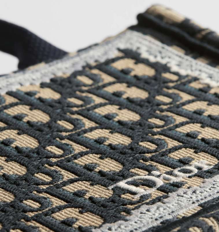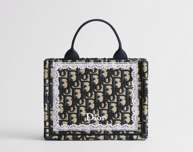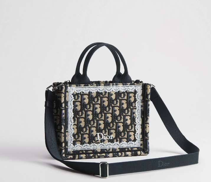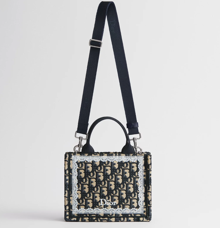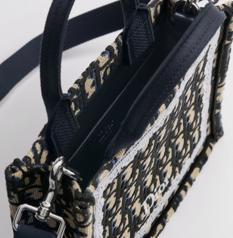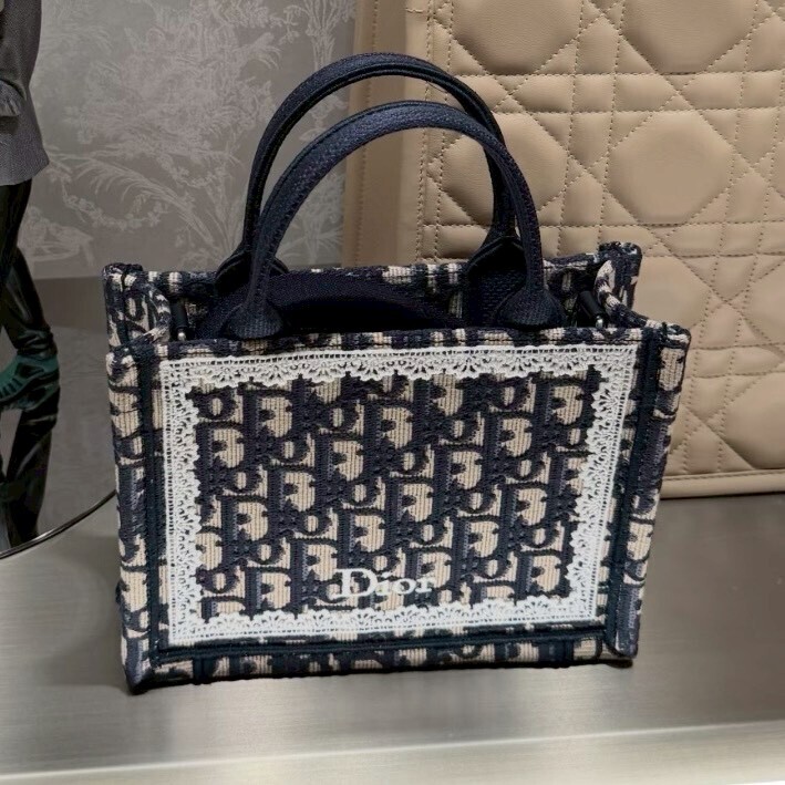 《在台現貨最低特價 最新》Dior Book Tote 附肩背帶迷你托特包 (藍色 Dior Oblique 刺繡搭配白色蕾絲)
