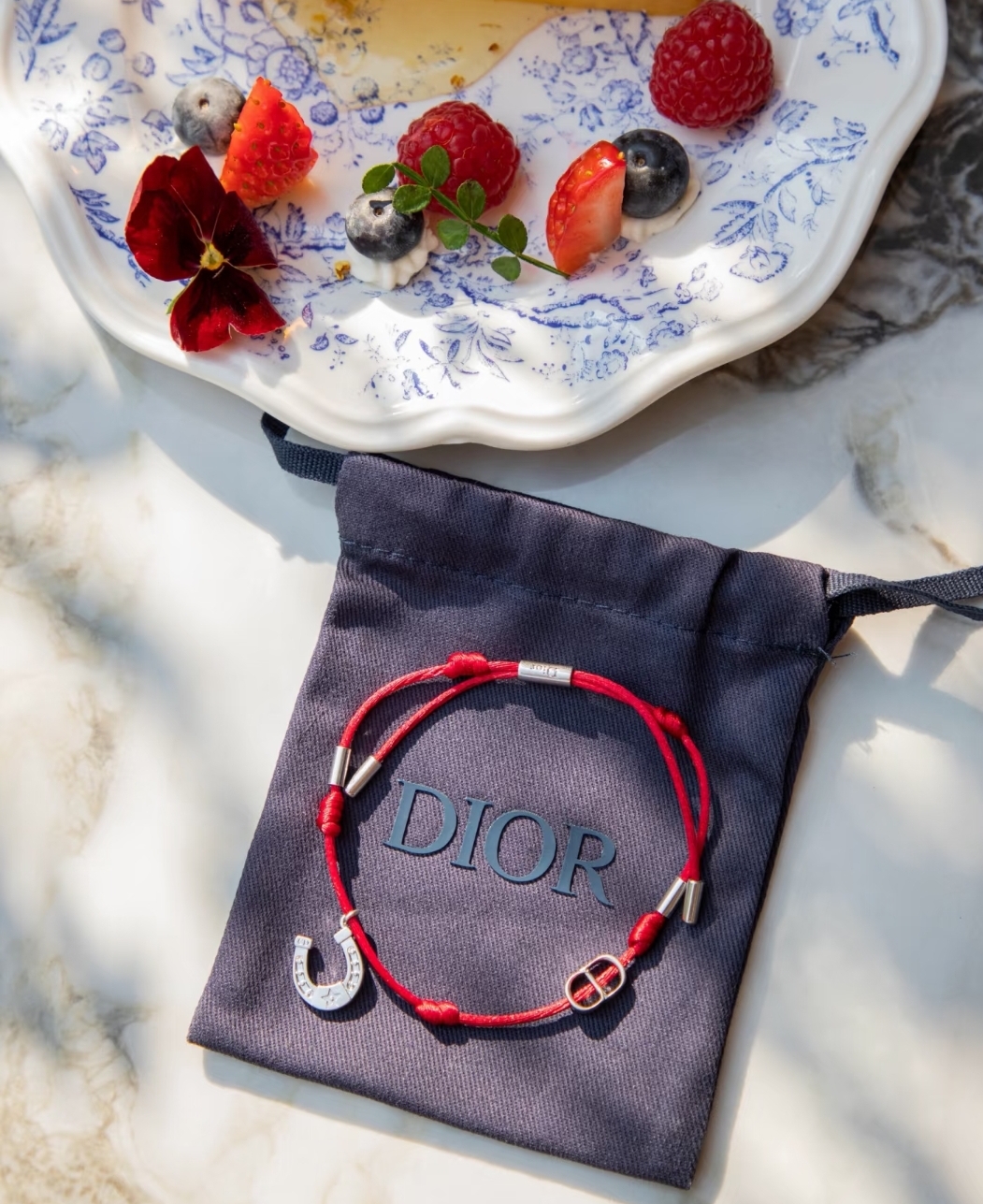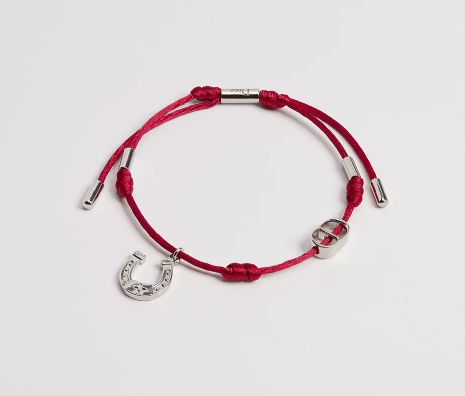 《在台現貨最低特價 最新》Dior Horseshoe 手環 紅色手繩和銀色飾面黃銅