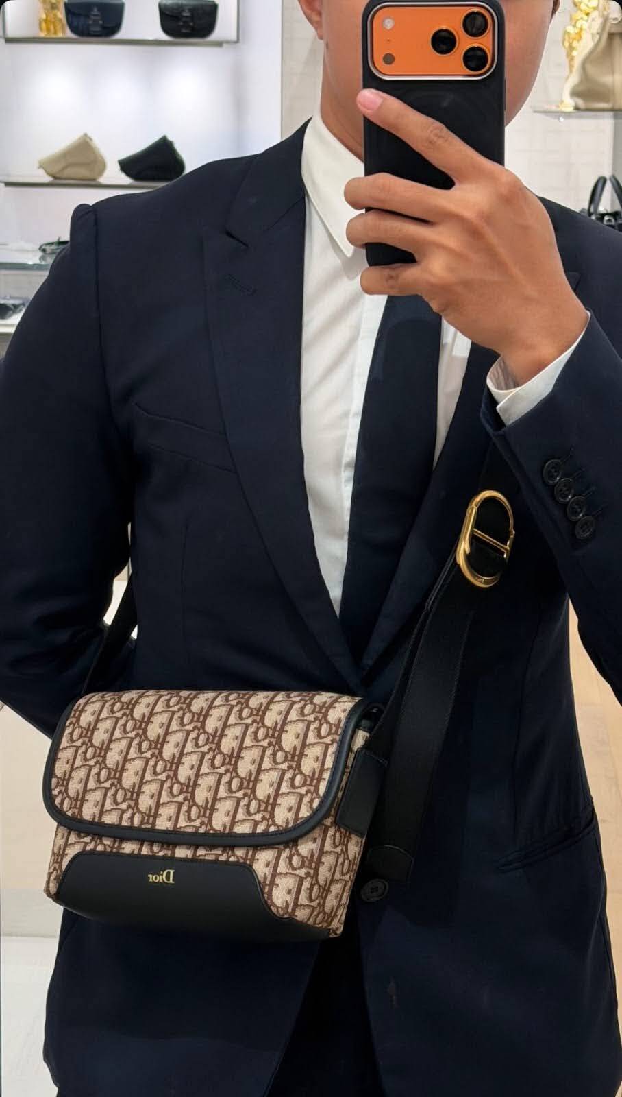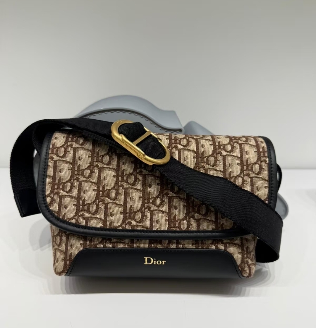 《在台現貨最低特價 最新》Dior Jett 迷你翻蓋郵差包 棕色 Dior Oblique 緹花