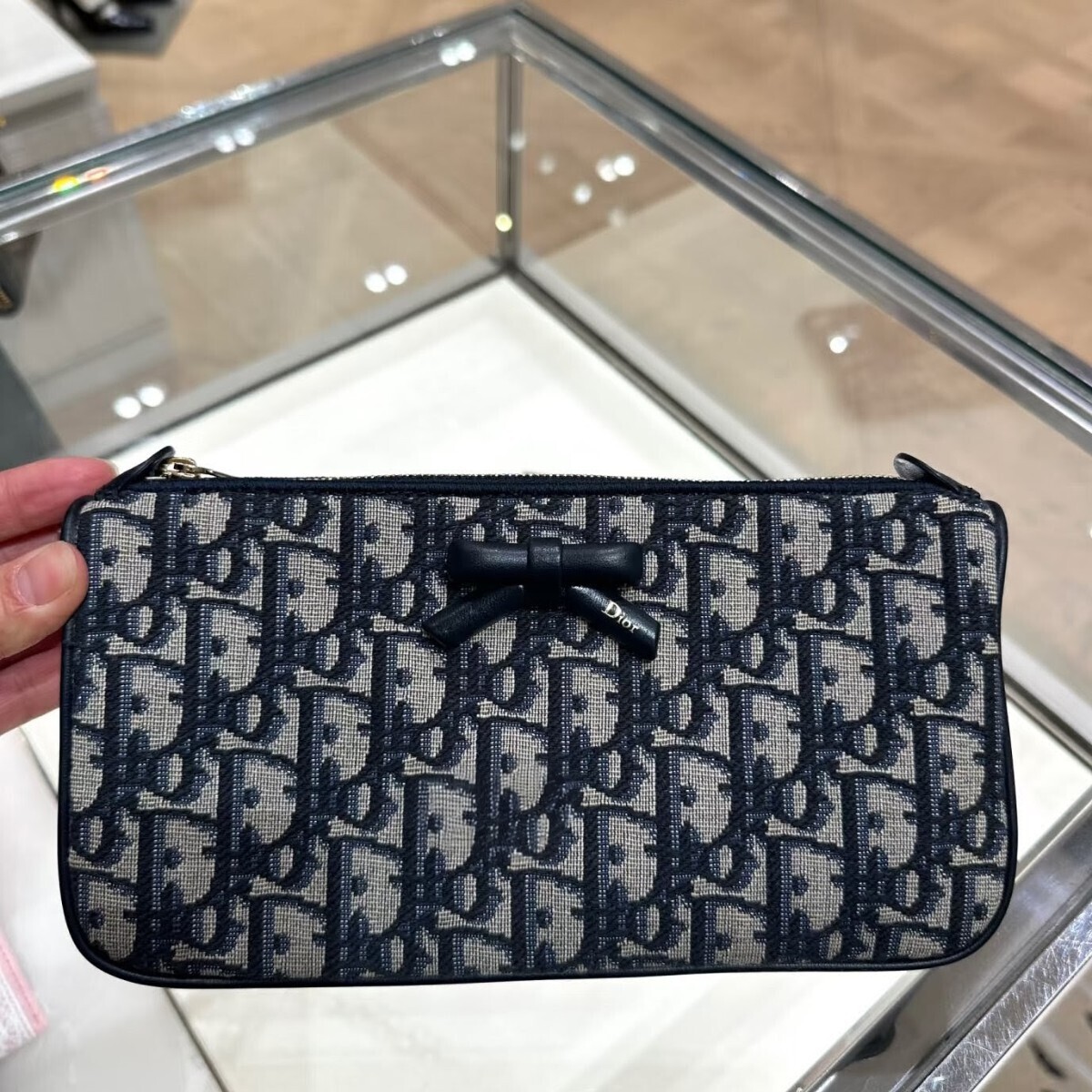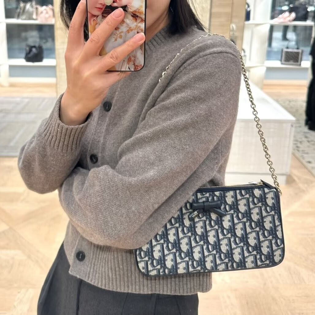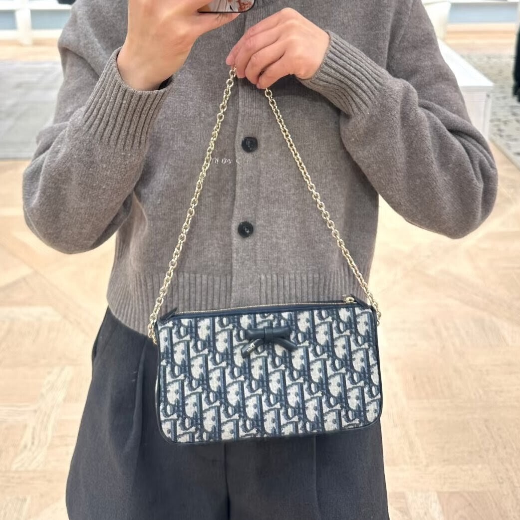 《在台現貨最低特價 最新》Dior Oblique Bow 蝴蝶結 手拿+鏈帶兩用包 (經典藍色 Dior Oblique)