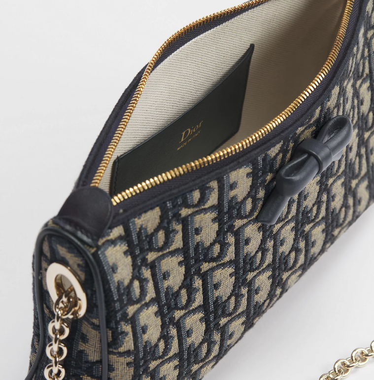 Dior Oblique Bow 附鏈帶蝴蝶結手拿包是 Jonathan Anderson 為 Dior 獨創的作品,時尚外形搭配 Dior 全新經典細節——精緻的蝴蝶結。其柔軟簡約的結構可手提或肩背,是理想的穿搭配件。