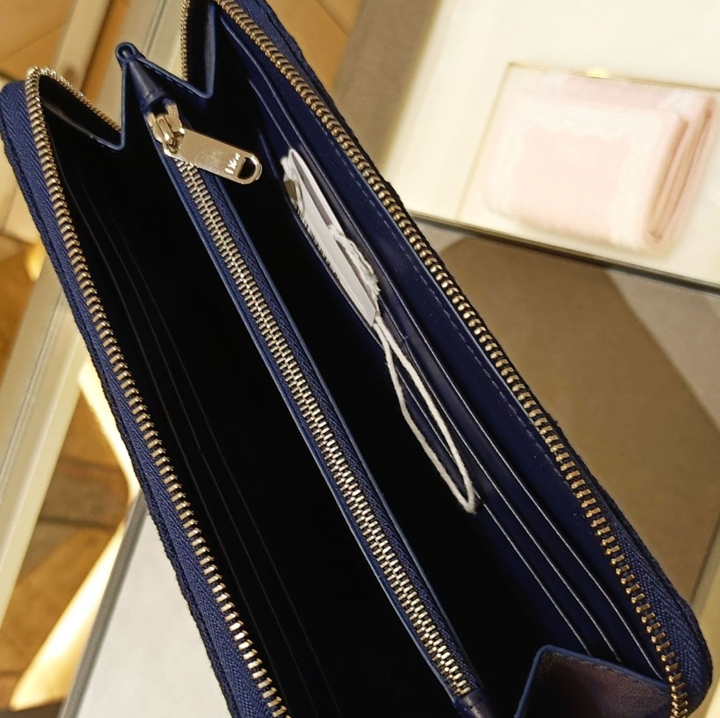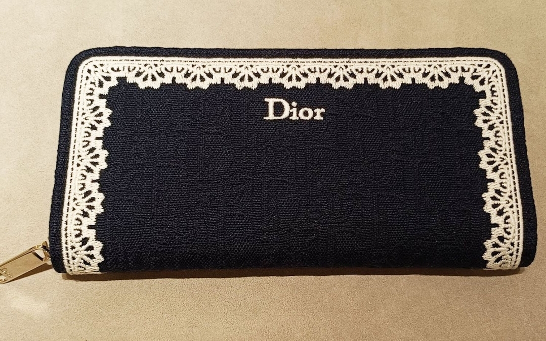 《在台現貨最低特價 最新》Dior Oblique Voyageur 薄款錢包 藍色 Dior Oblique 緹花和白色蕾絲