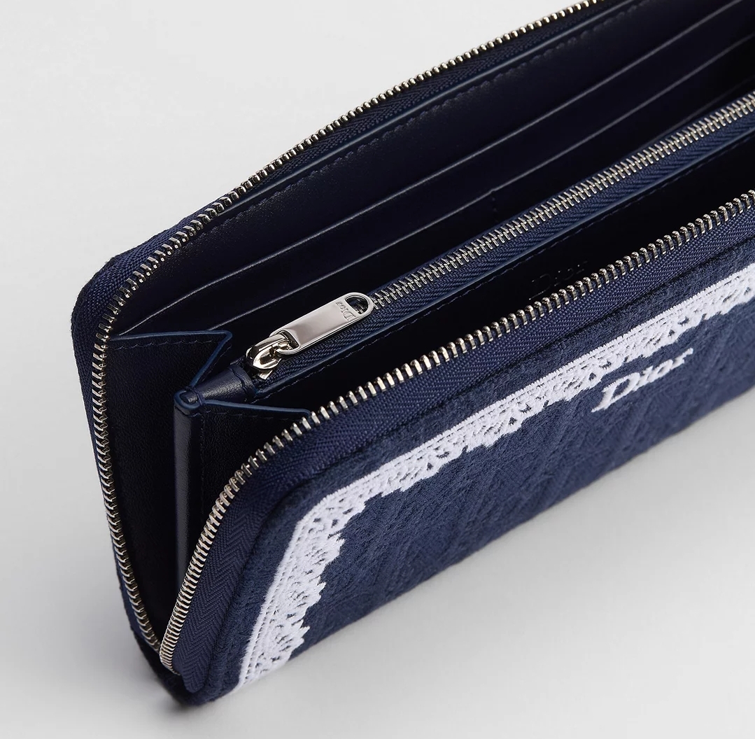 Dior Oblique Voyageur 薄款錢包設計簡約優雅,是您的必備配件,以藍色 Dior Oblique 緹花製作,搭配白色蕾絲細節,正面綴以 Dior 標誌刺繡。款式時尚且收納空間寬敞,可隨身攜帶所有日常必需品。這款錢包可搭配同系列其他配件,也可輕鬆收入任何包款中。
