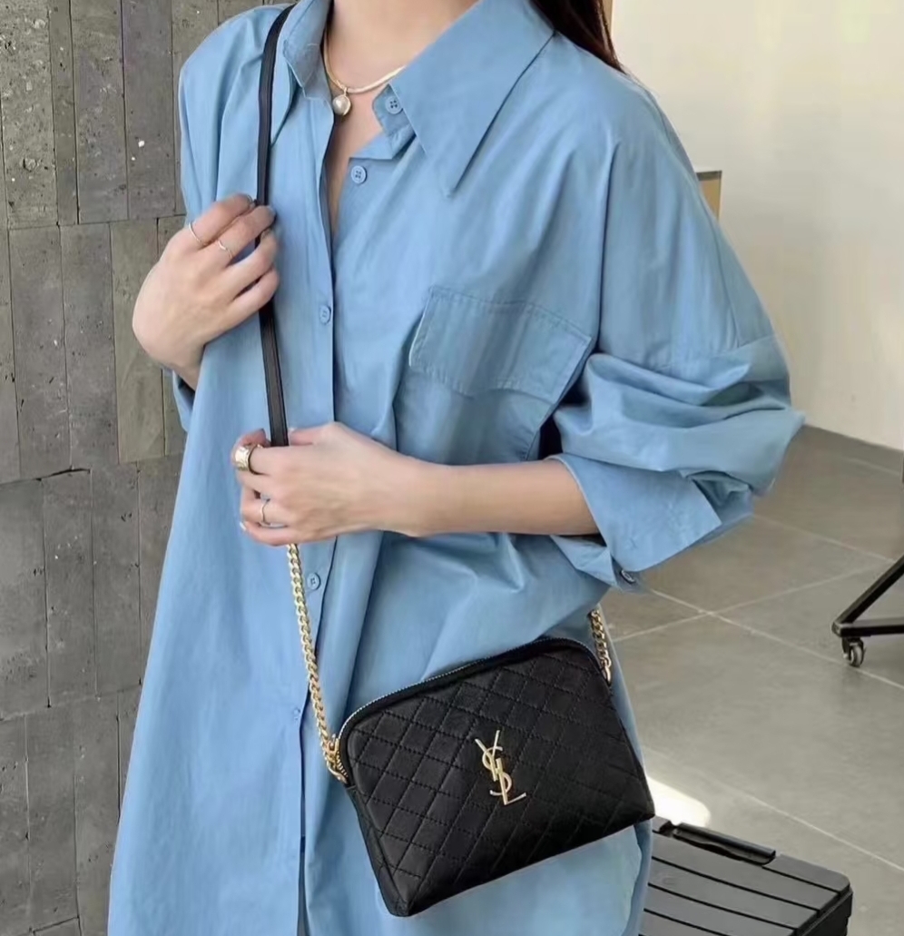 《在台現貨最低特價 最新》Saint Laurent YSL 絎縫小羊皮貝殼鏈帶包 黑色