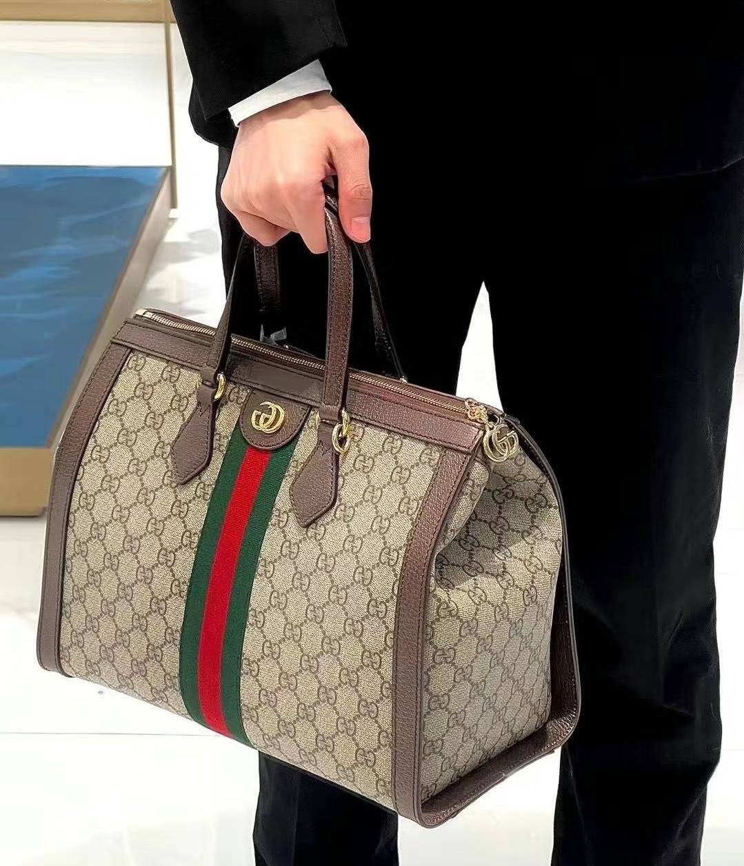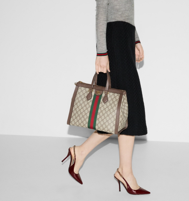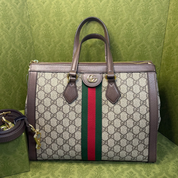 雙皮革手柄與可拆卸肩帶,適合多樣攜帶方式,詮釋 Gucci 的時尚美學。