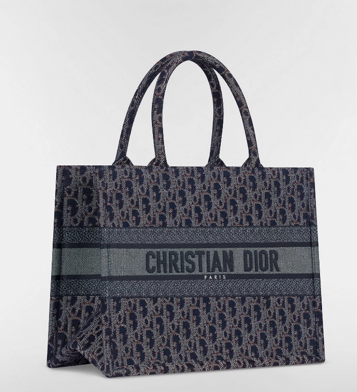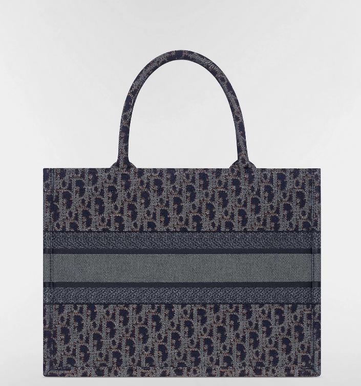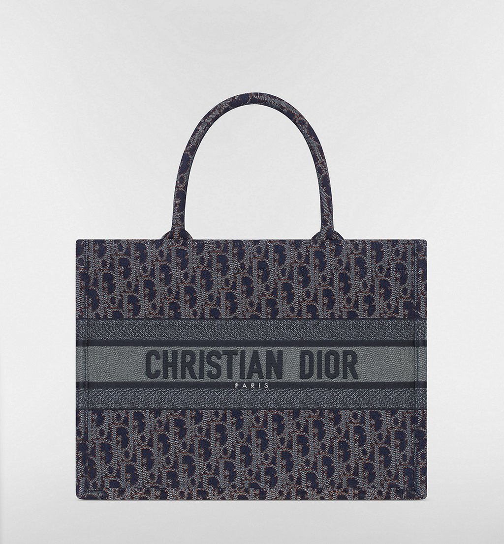 Dior Book Tote 托特包現已成為 Dior 美學典範。包款可容納所有日常必需品,繡滿藍色和菸草棕 Dior Oblique Denim 圖案,融入織邊牛仔布的縫線細節並呈現巧妙對比效果,為品牌經典圖案注入嶄新風采。這款中型托特包正面飾有 Christian Dior Paris 標誌,突顯品牌標誌性精湛工藝,適合手提或肩背。