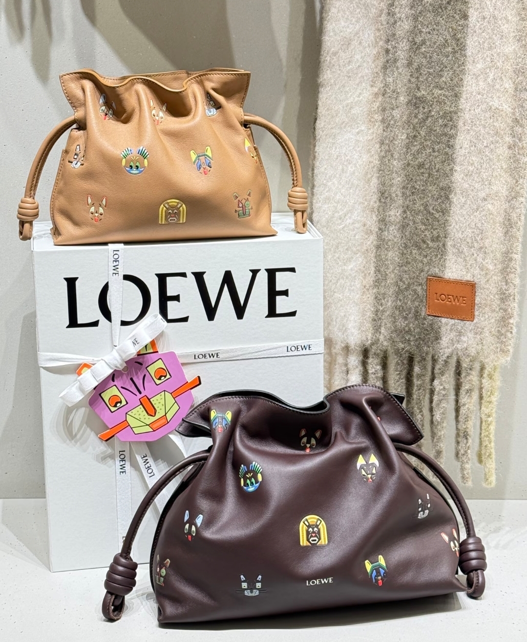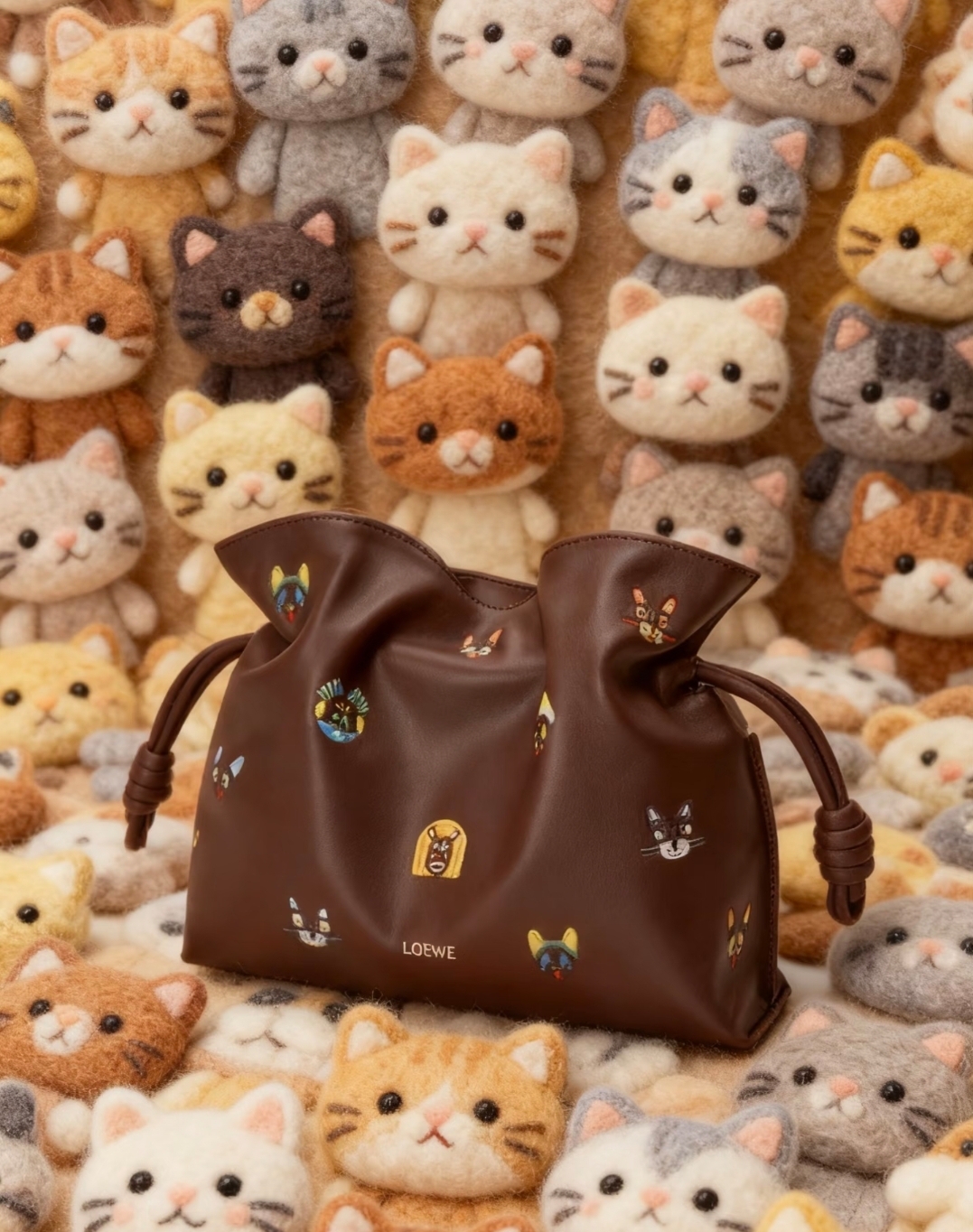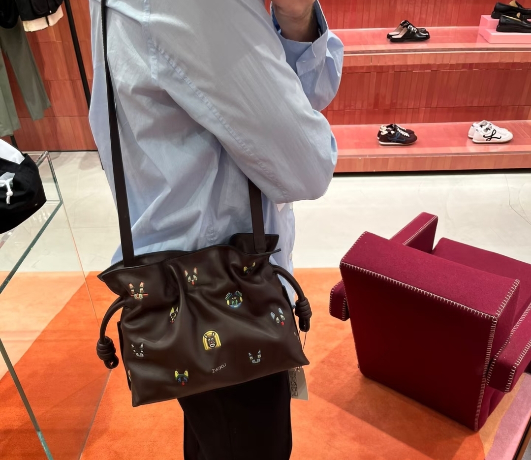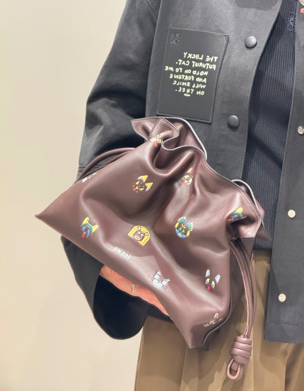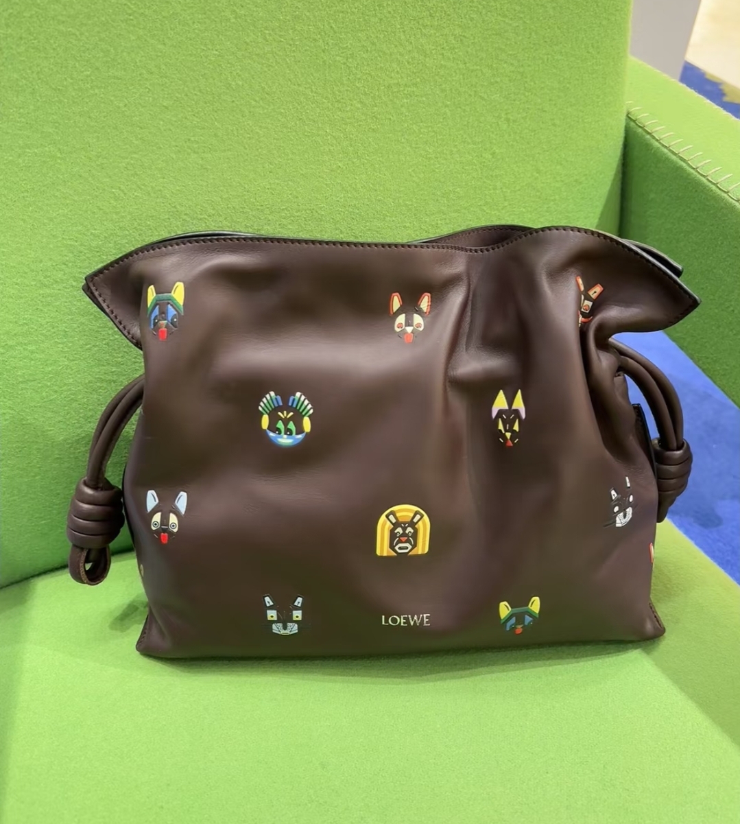 《我最便宜!全新正品》Loewe 納帕小牛皮小貓圖案 Flamenco中款多用途包