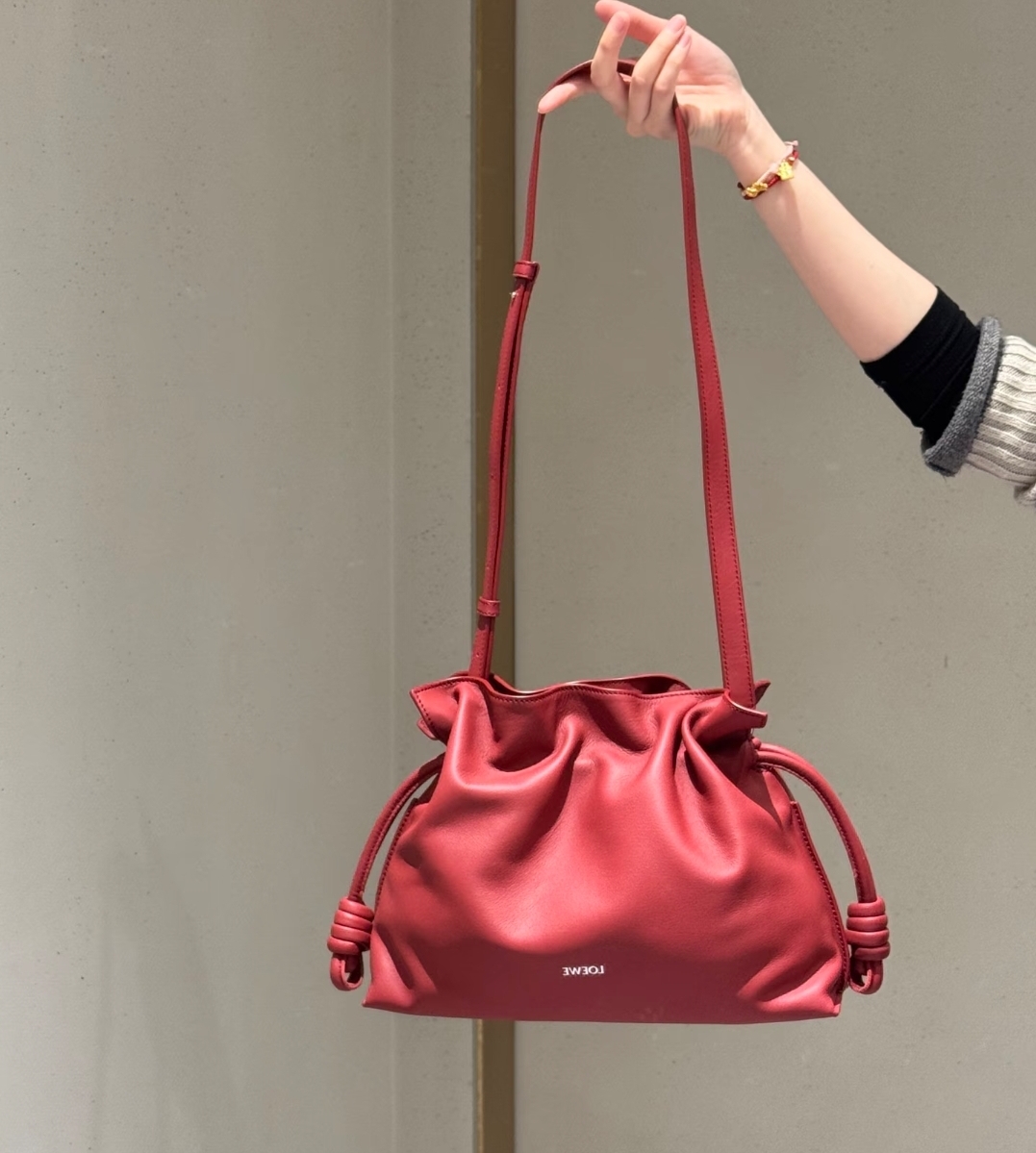 《我最便宜!全新正品》Loewe 納帕小牛皮 Flamenco 中款多用途包 紅色