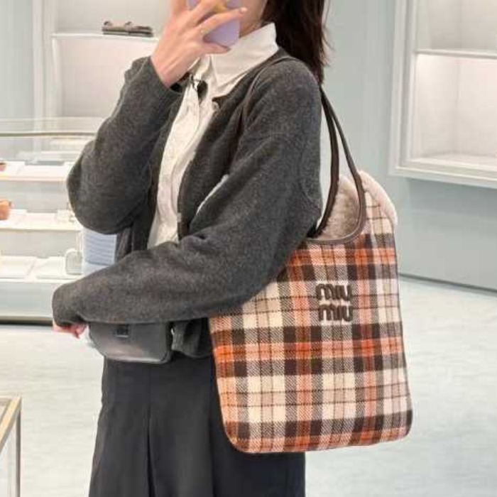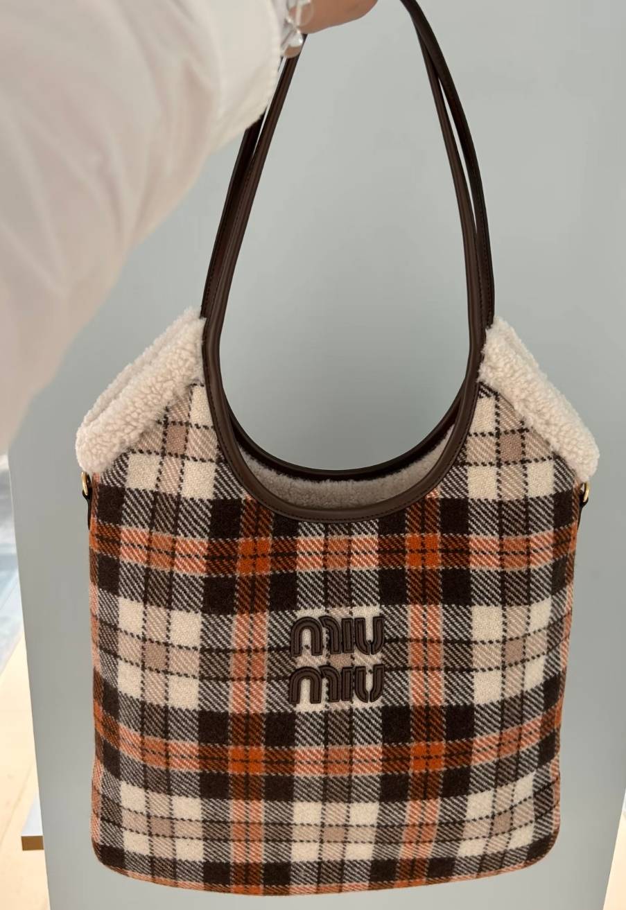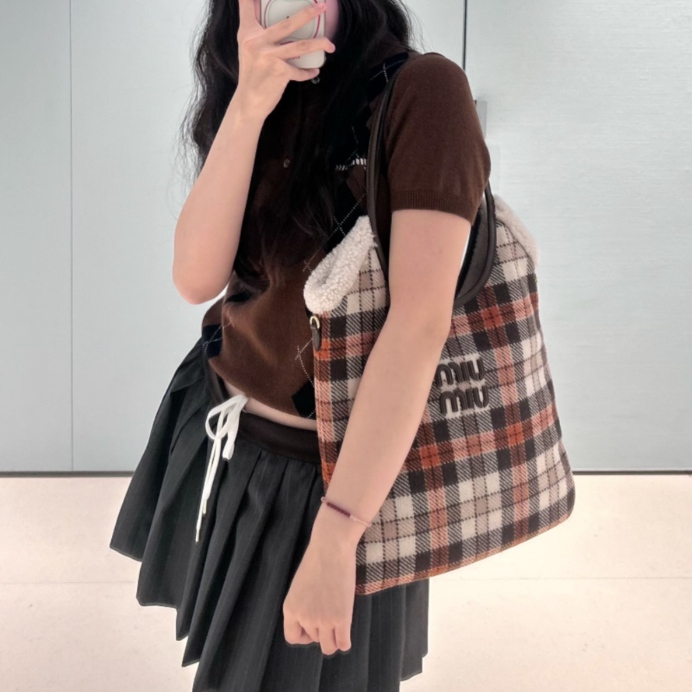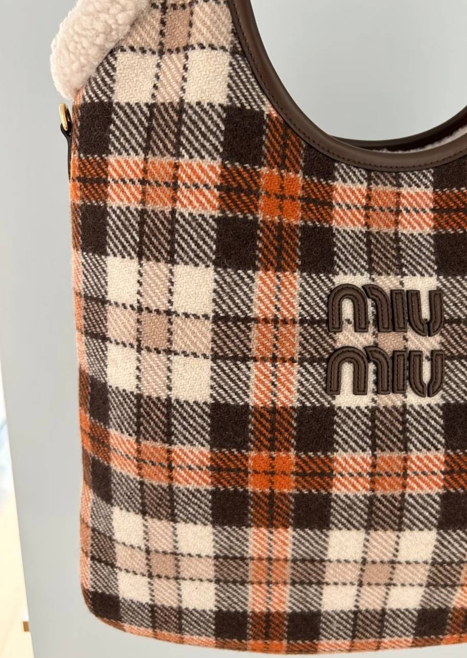《我最便宜!全新正品》MIU MIU 新季品 格紋羊毛肩背手提包