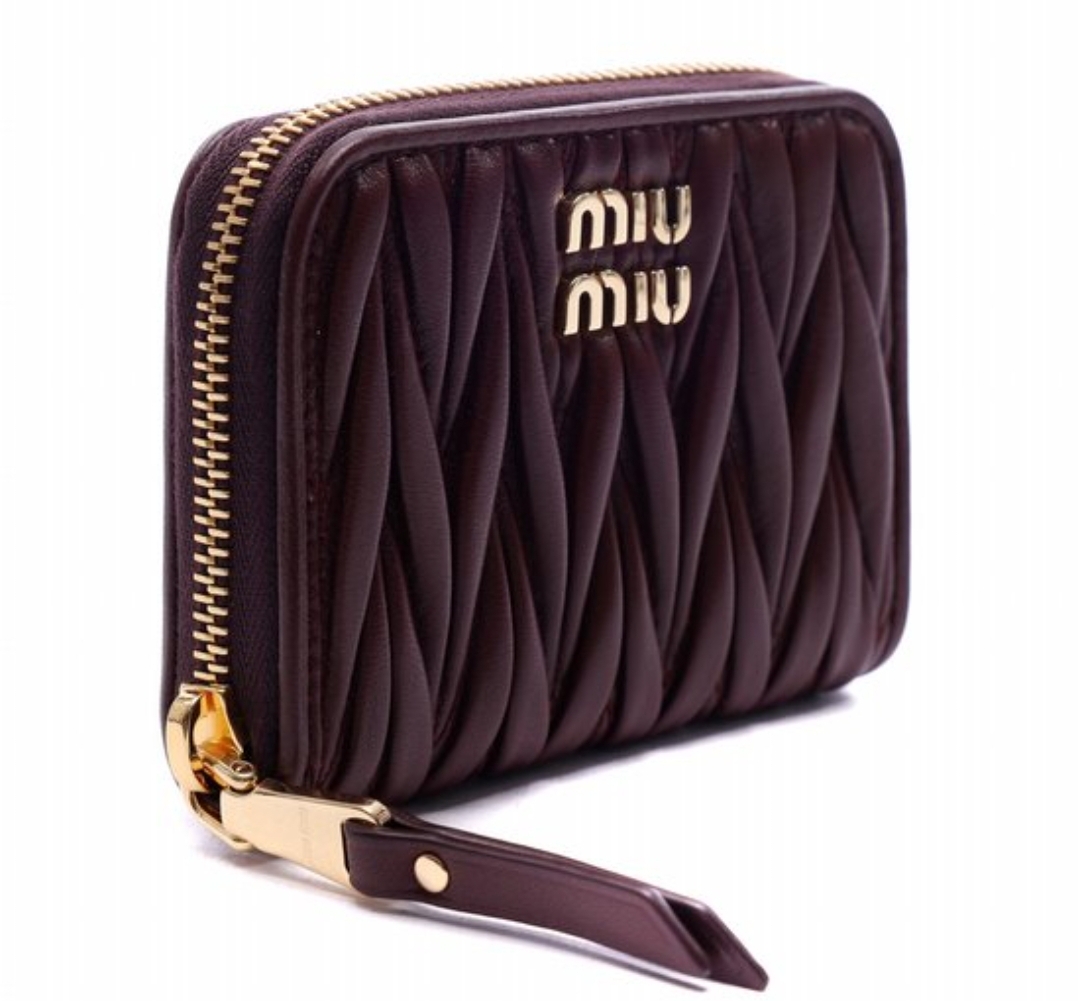 《我最便宜!全新正品》MIU MIU Matelassé零錢包 酒紅色