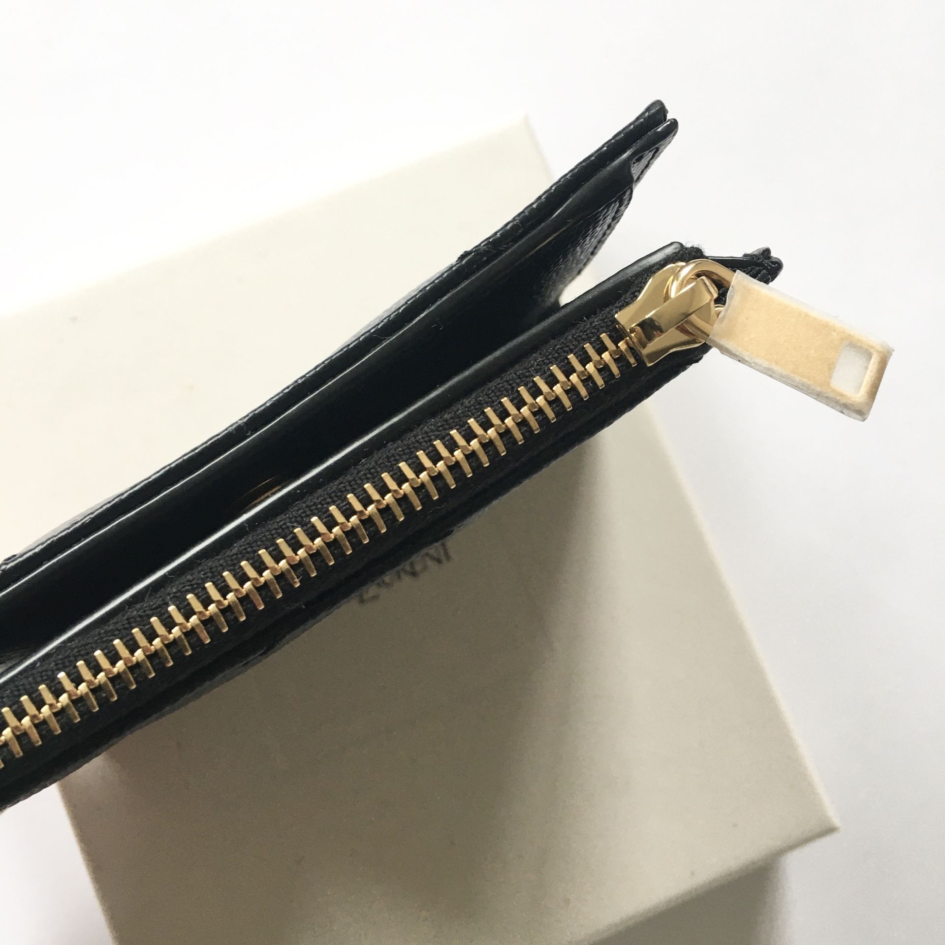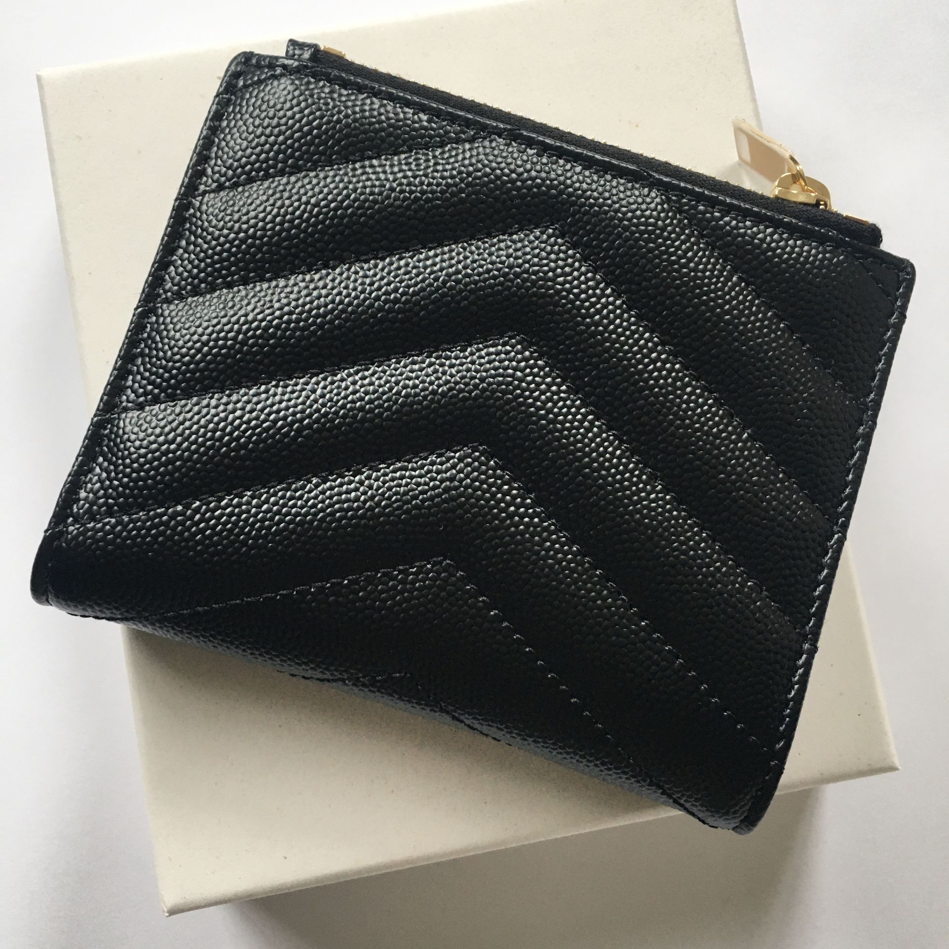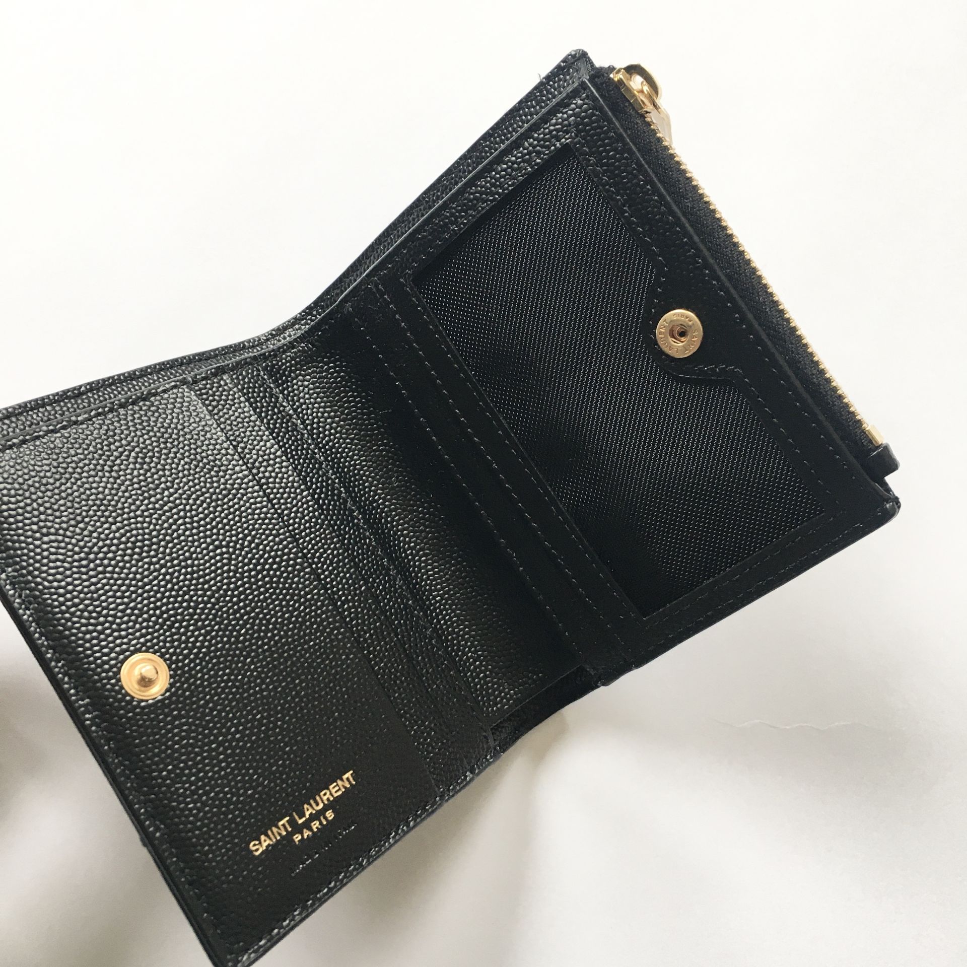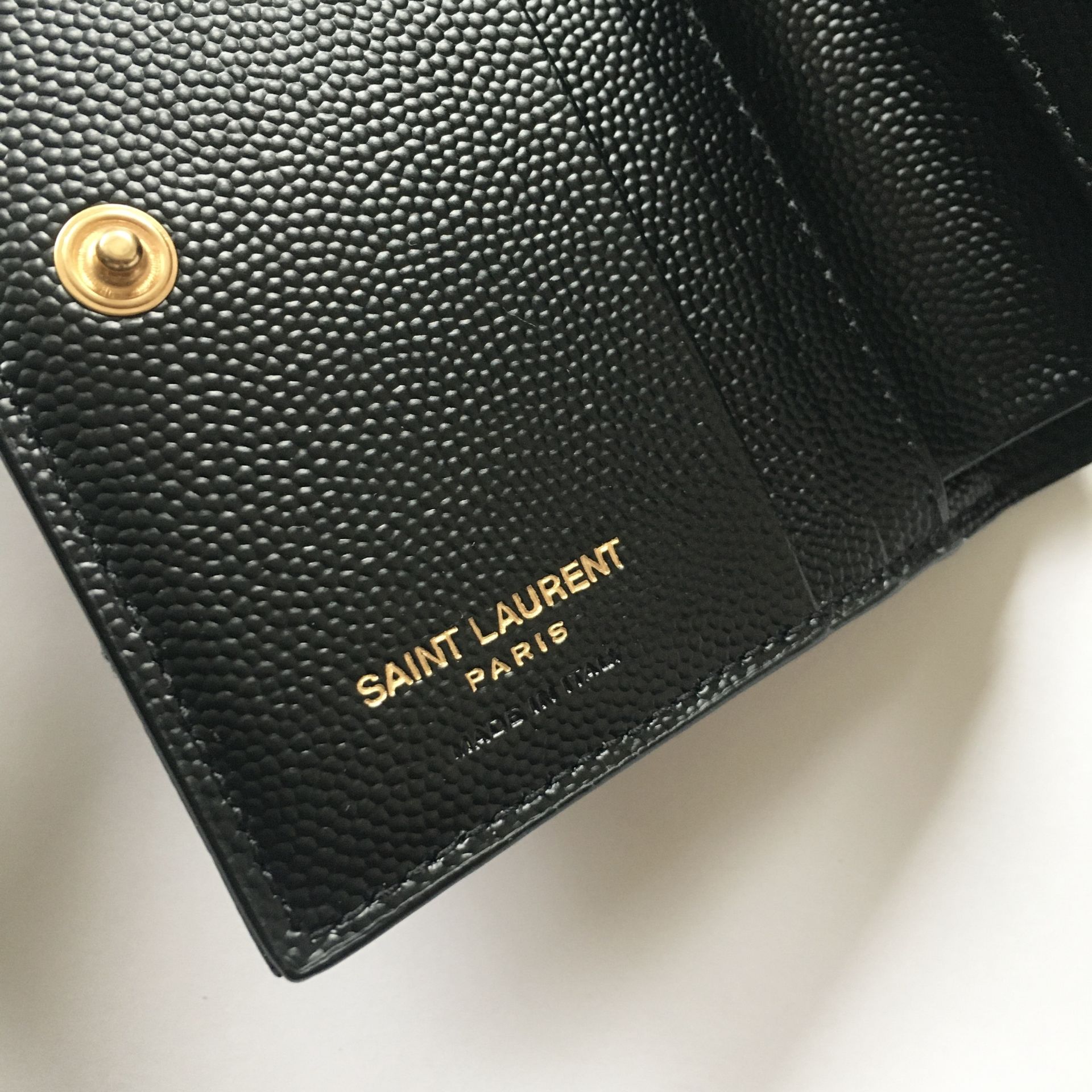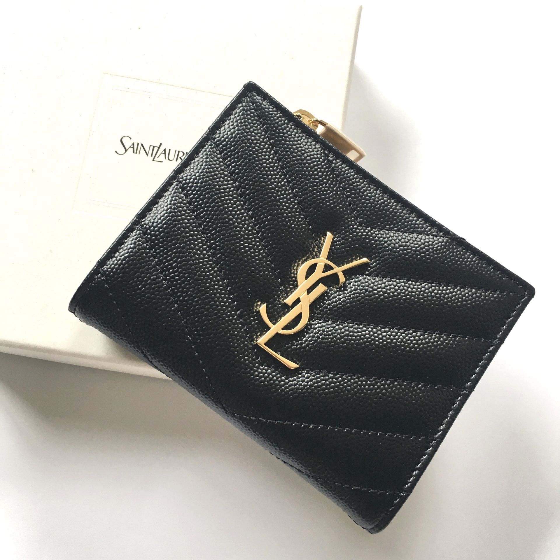 卡片套綴以金屬互鎖YSL字母和絎縫縫線。