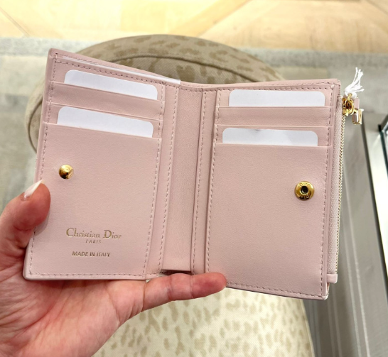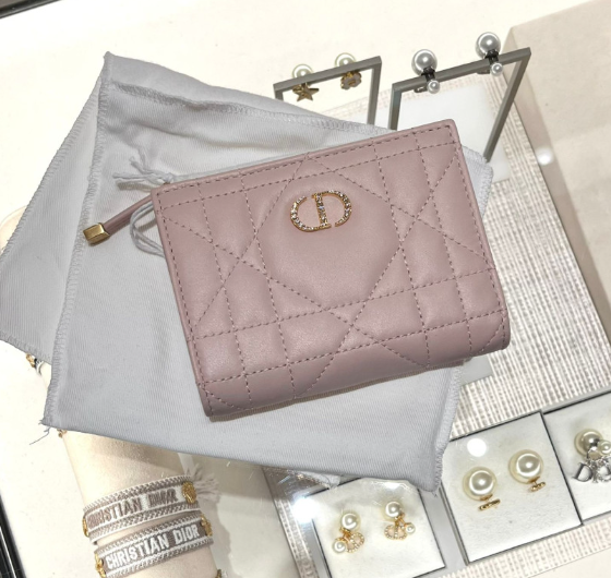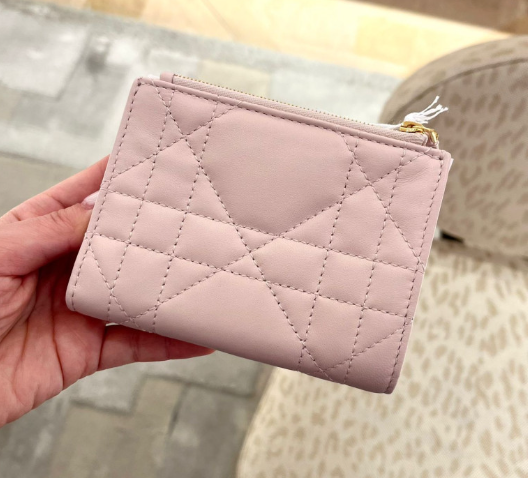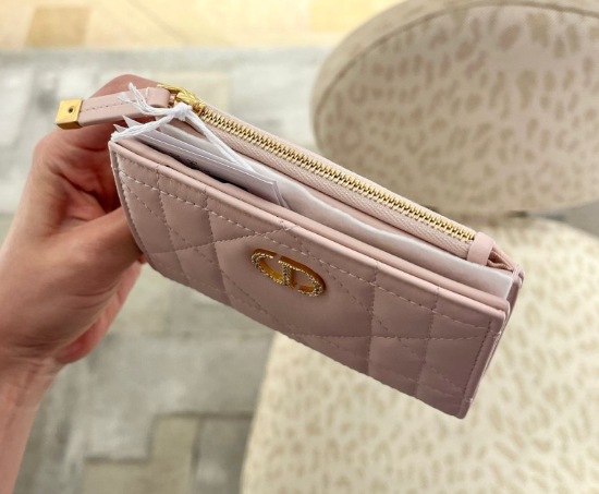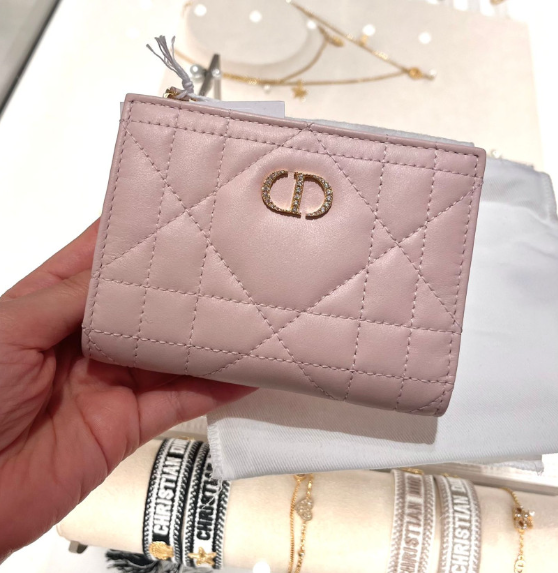 《現貨最低特價 》 Dior Caro Dahlia 錢包 綴以水晶 淡粉色 Macrocannage 大籐格紋羊皮