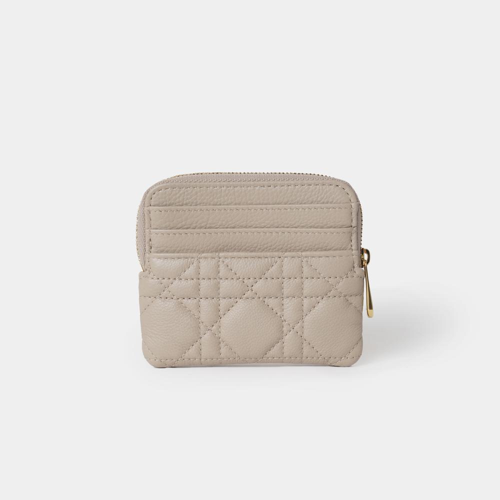 《現貨最低特價 》DIOR Caro Lavender 錢包 淡米色柔軟 Cannage 籐格紋小牛皮