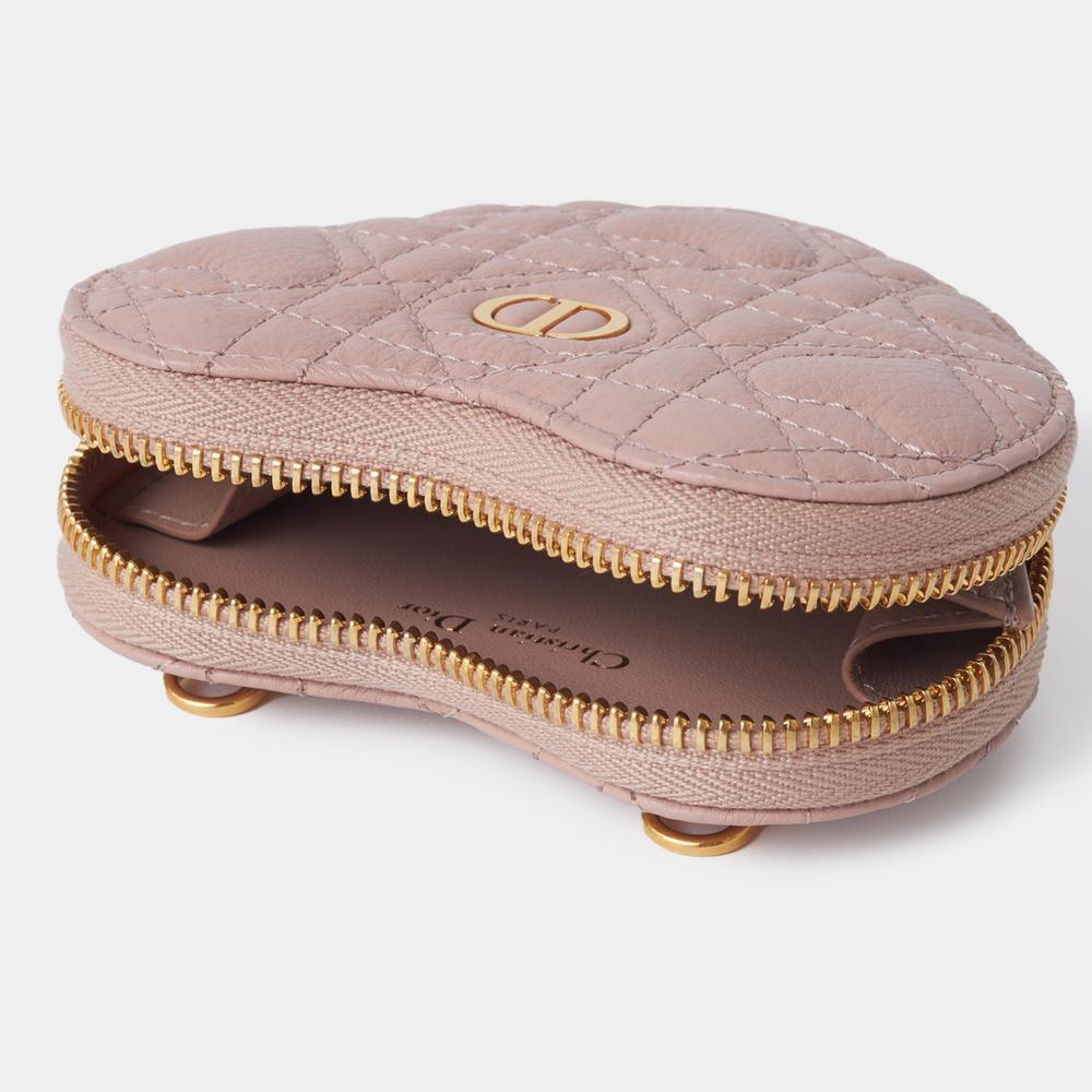 這款 Dior Caro Heart 手拿包是 Dioramour 膠囊系列的作品之一,設計兼具時尚與實用性,以淡粉紅色小牛皮製成,點綴心形圖案 Cannage 籐格紋縫線,並附有可拆卸鏈帶,可肩背、斜背或放入皮包內。可搭配其他 Dioramour 作品,讓造型更趨完美。