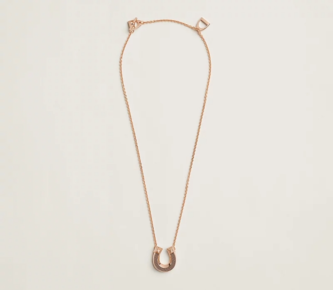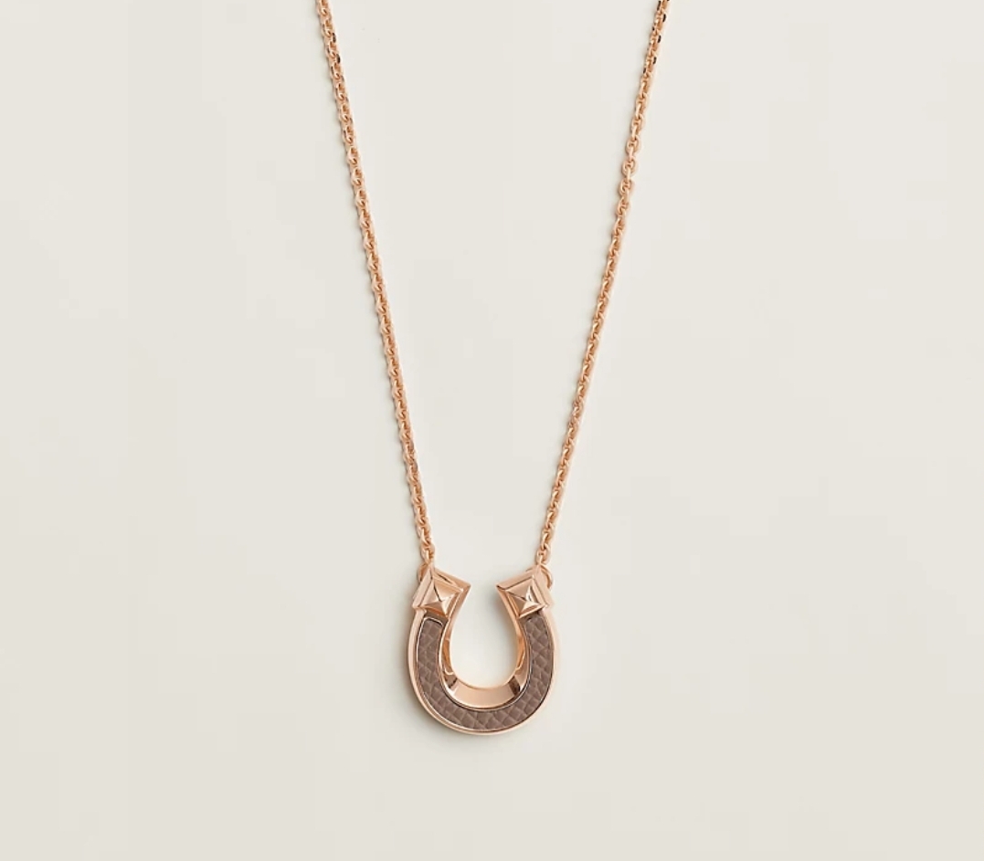 《現貨最低特價 》Hermes 愛馬仕 Epsom小牛皮和金屬 馬蹄造型項鍊 玫瑰金