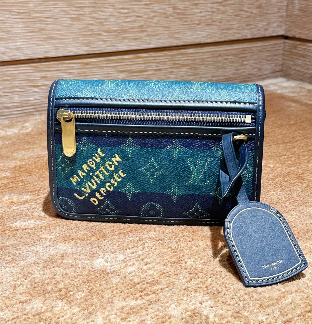 這款Bosphore可穿戴式錢包採用Monogram Heritage塗層帆布製作,配以藍色皮革飾邊Saffron色調紡織襯裡,兼具美觀及實用。錢包設有空間寬敞的主隔層及正面拉鍊隔層,可輕鬆容納日常必備品。對比鮮明的縫線細節彰顯品牌精湛工藝,更配有可調節長度肩帶,可作單肩或手提攜帶。