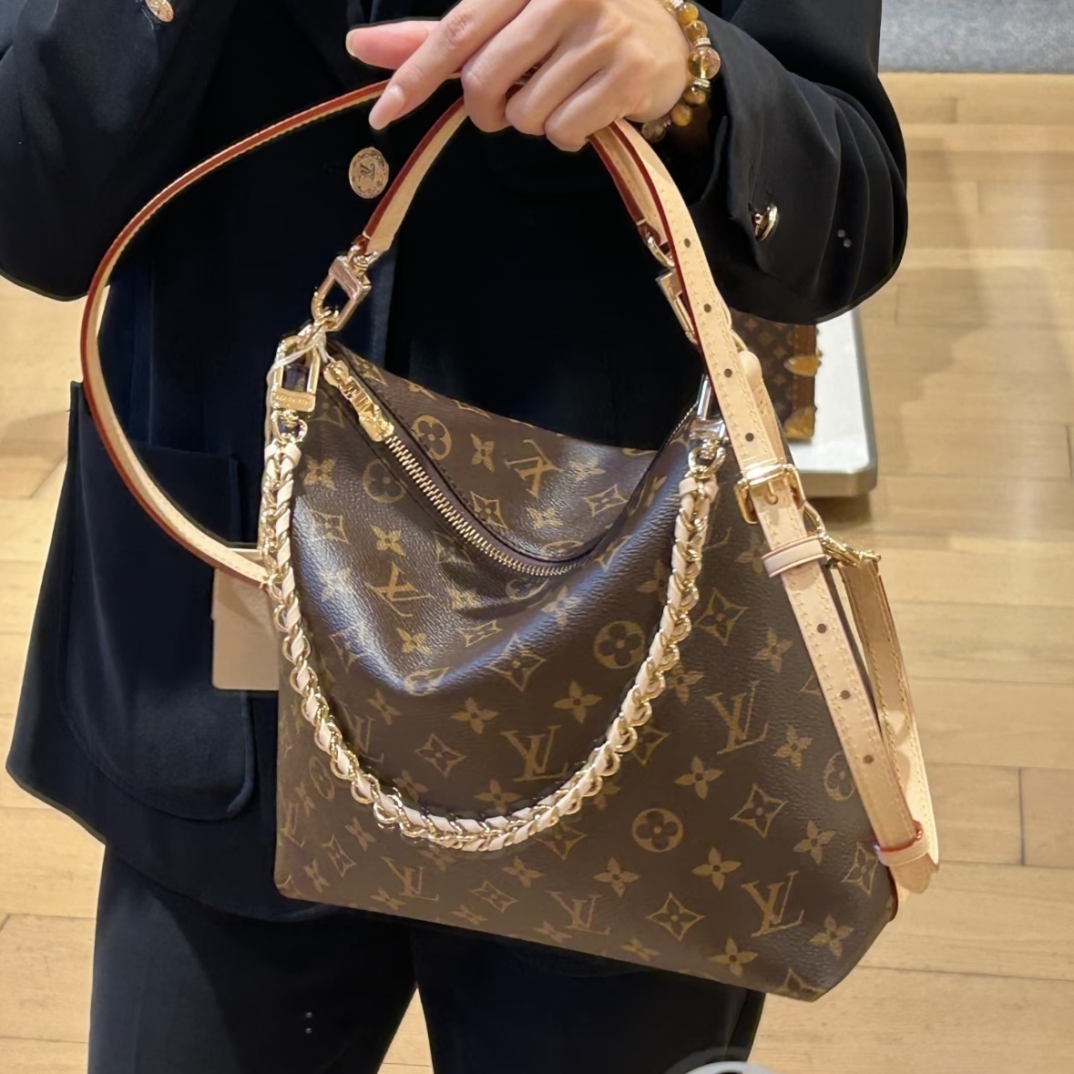 這款恰如其名的Multipass以當代設計詮釋百搭風格,完美適配各種不同場合。設計靈感取自Express包包,採用品牌標誌性的Monogram帆布製作,包身自然垂軟,綴以對比鮮明的VVN色皮革飾邊。金色金屬件為整體設計增添精緻流麗的細節,並配有可隨心拆下的編織鏈條。