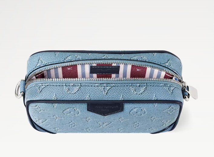 這款Trocadéro可穿戴式錢包選用Monogram Heritage塗層帆布製作,搭配皮革雙邊與硬箱風格的加固護角,向品牌1980年代的小型斜背包致敬。航海色調設計與彩色條紋襯裡相得益彰,可調節長度的可拆式肩帶可作肩背或斜背攜帶。