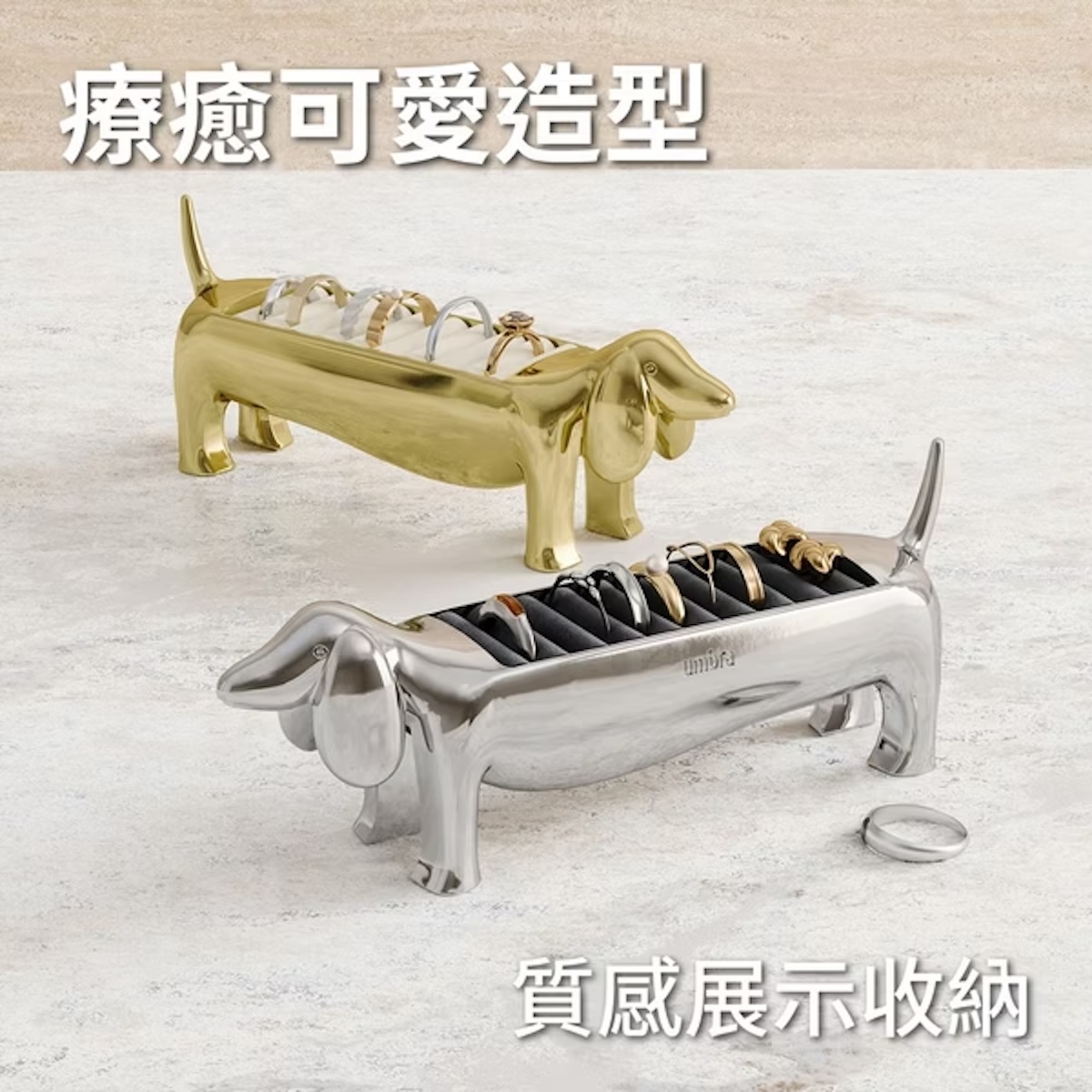 umbra|臘腸狗金屬戒指收納座(曜金)