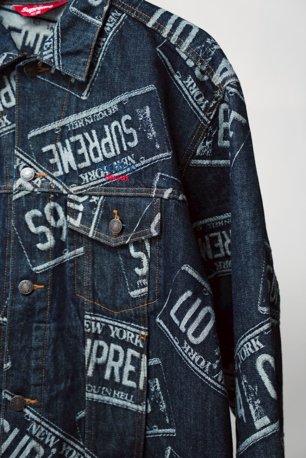 Supreme SS26 Week1 Jacquard Denim Trucker Jacket "License Plate" 滿版印花