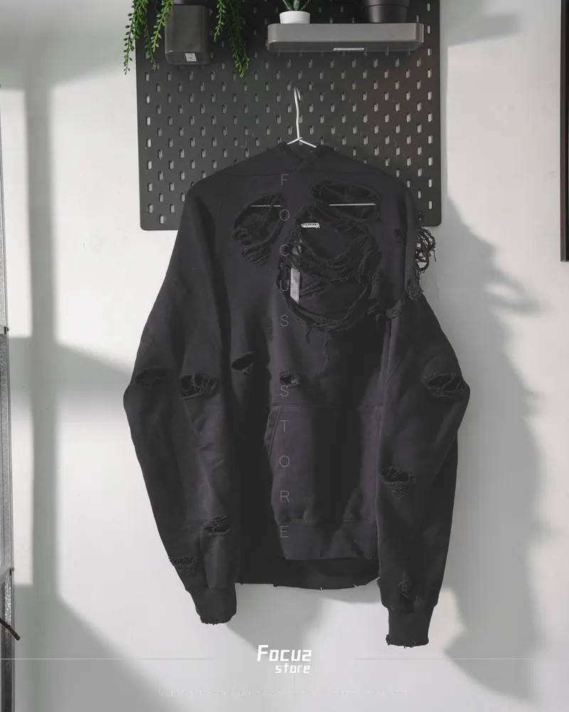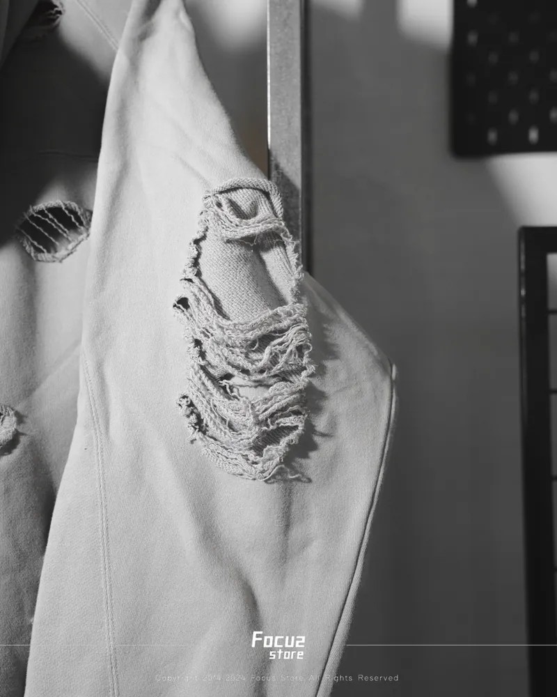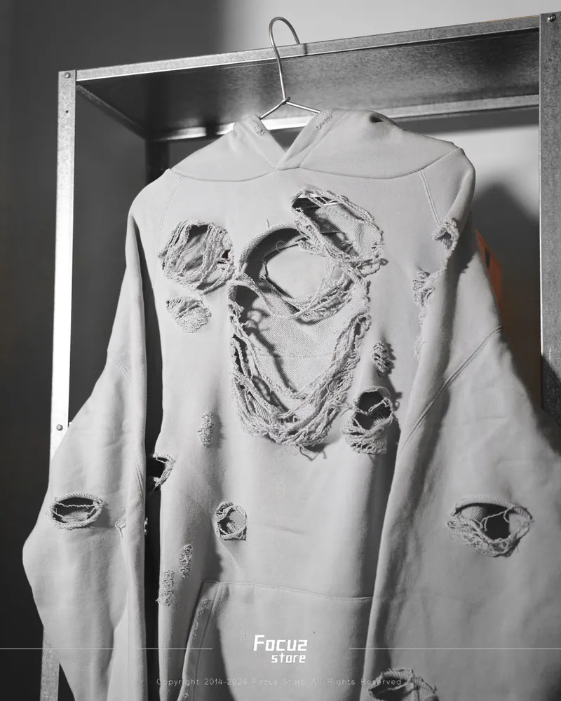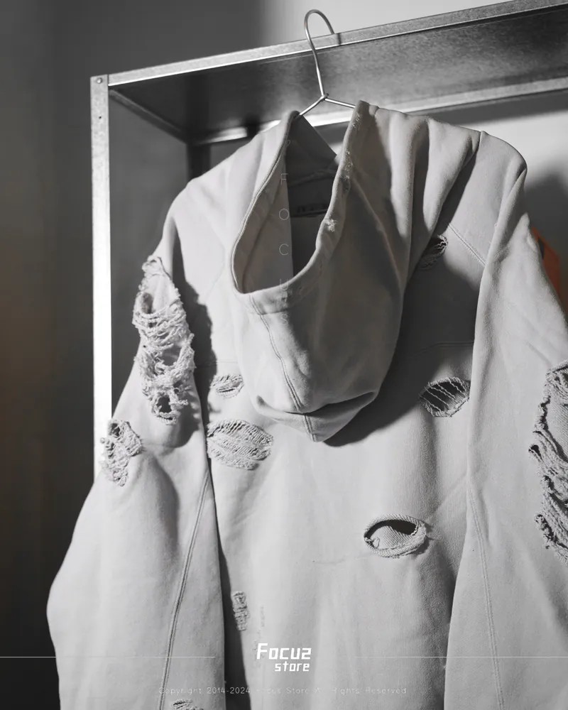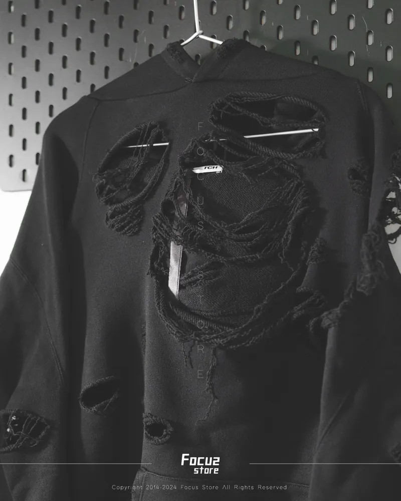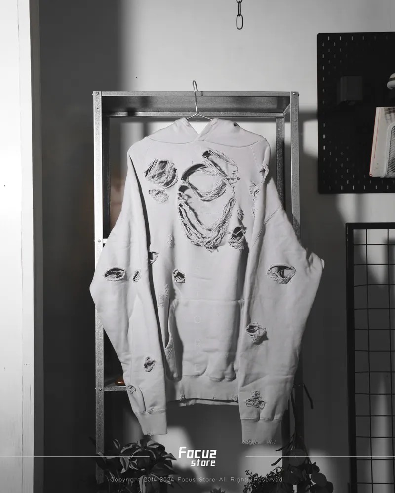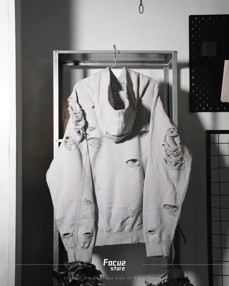 【Focus Store】 EGO FETCH Destroyed Hoodie 黑色/灰色 連帽衛衣 EGO24SSTHD069