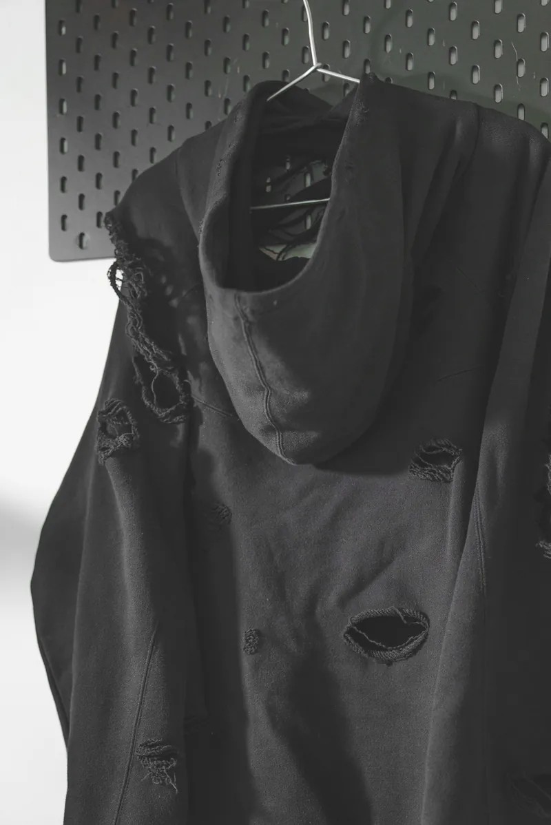 EGO FETCH Destroyed Hoodie 黑色/灰色 連帽衛衣 EGO24SSTHD069