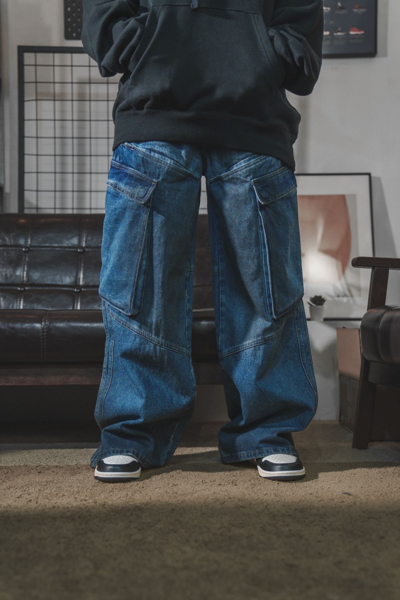 【Focus Store】EGO FETCH Smudge Cargo Jeans 泥染做舊牛仔闊腿褲 EGO24AWBPT078