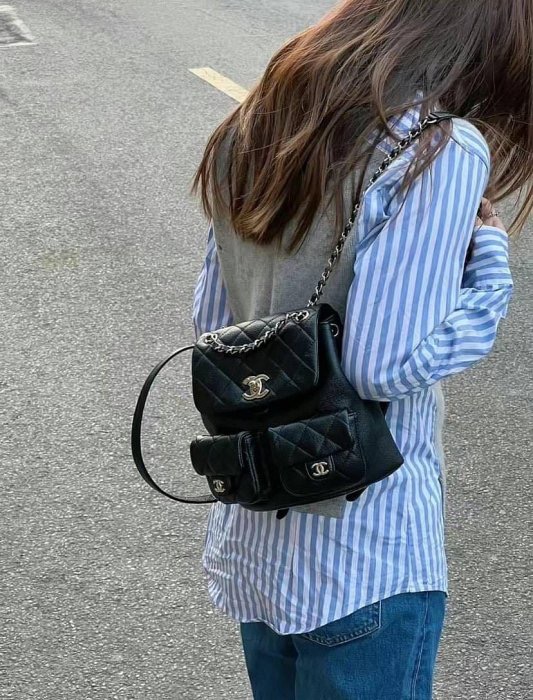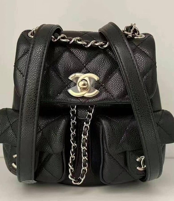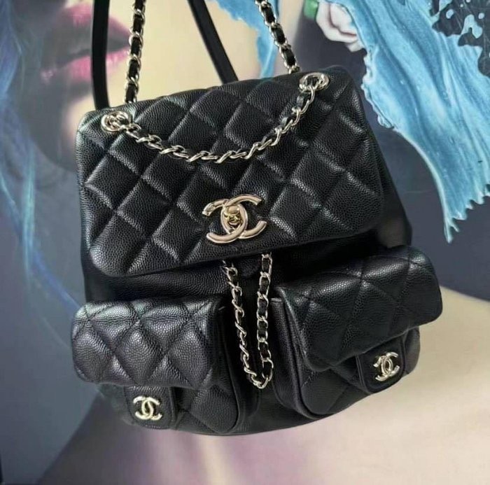 CHANEL AS3860 Duma 爆款中型 荔枝牛皮後背包 黑