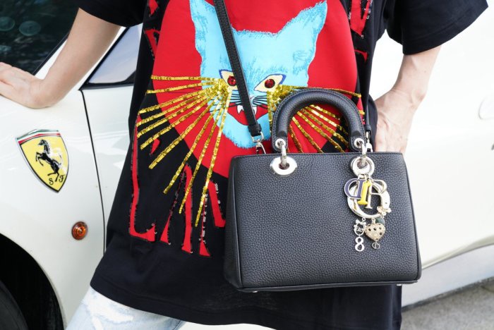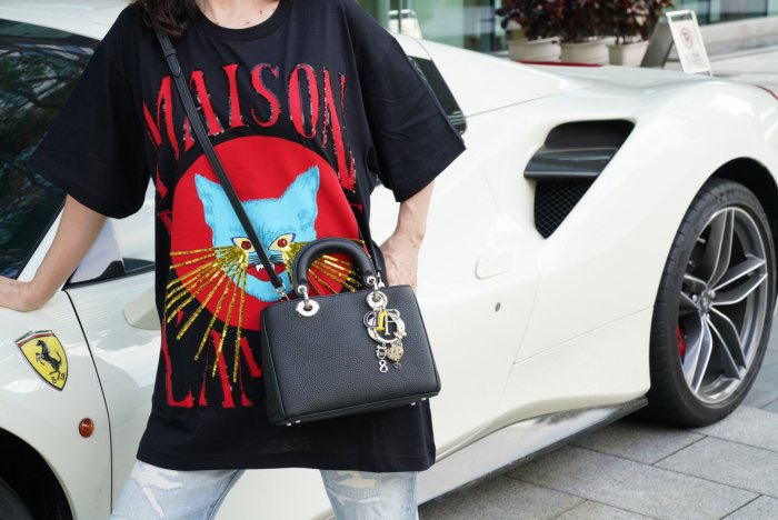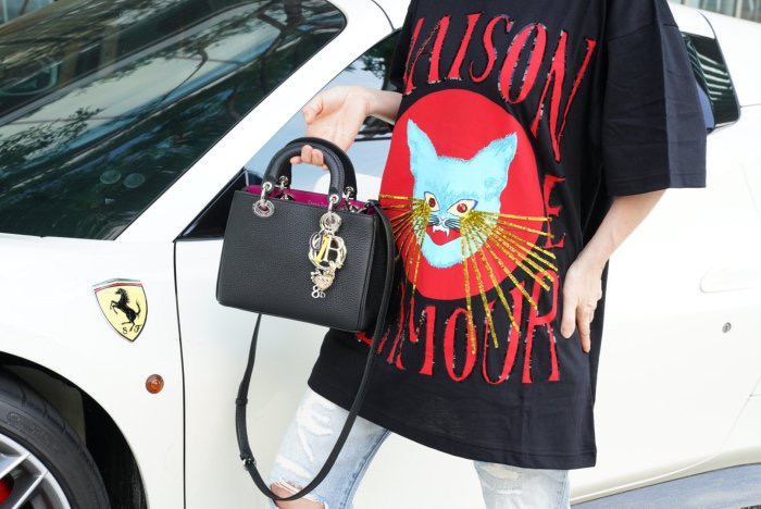 DIOR Mini DIORISSIMO M0915 bag 迷你手提肩背包 黑/桃紅