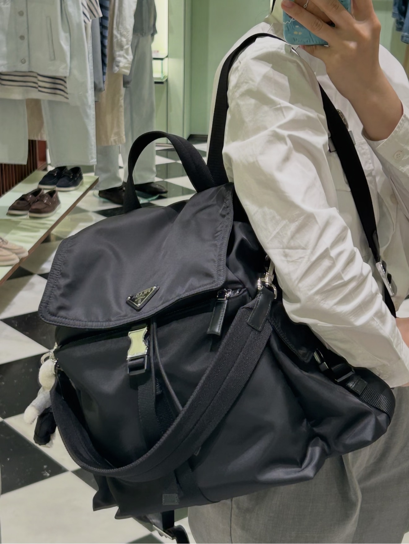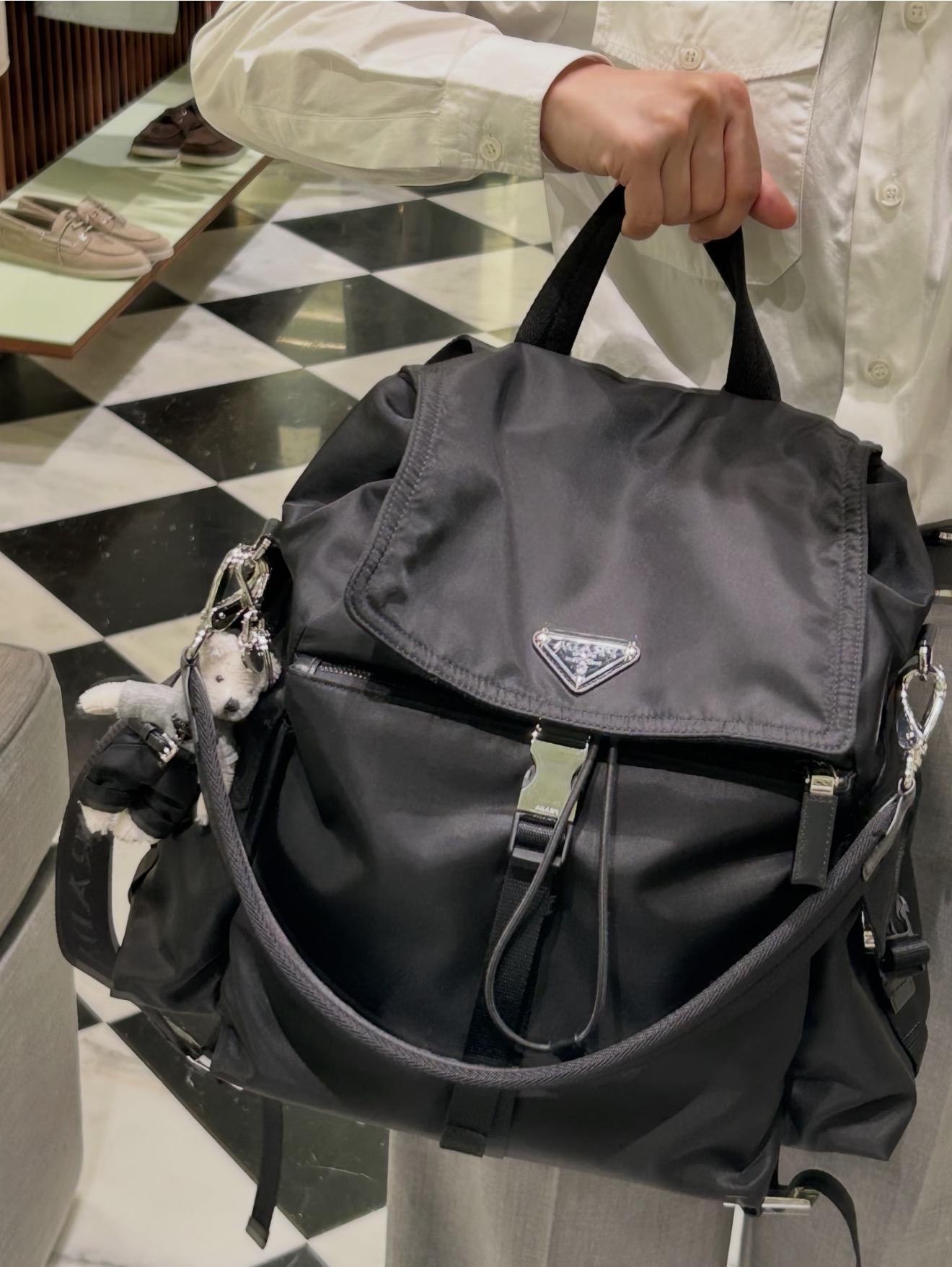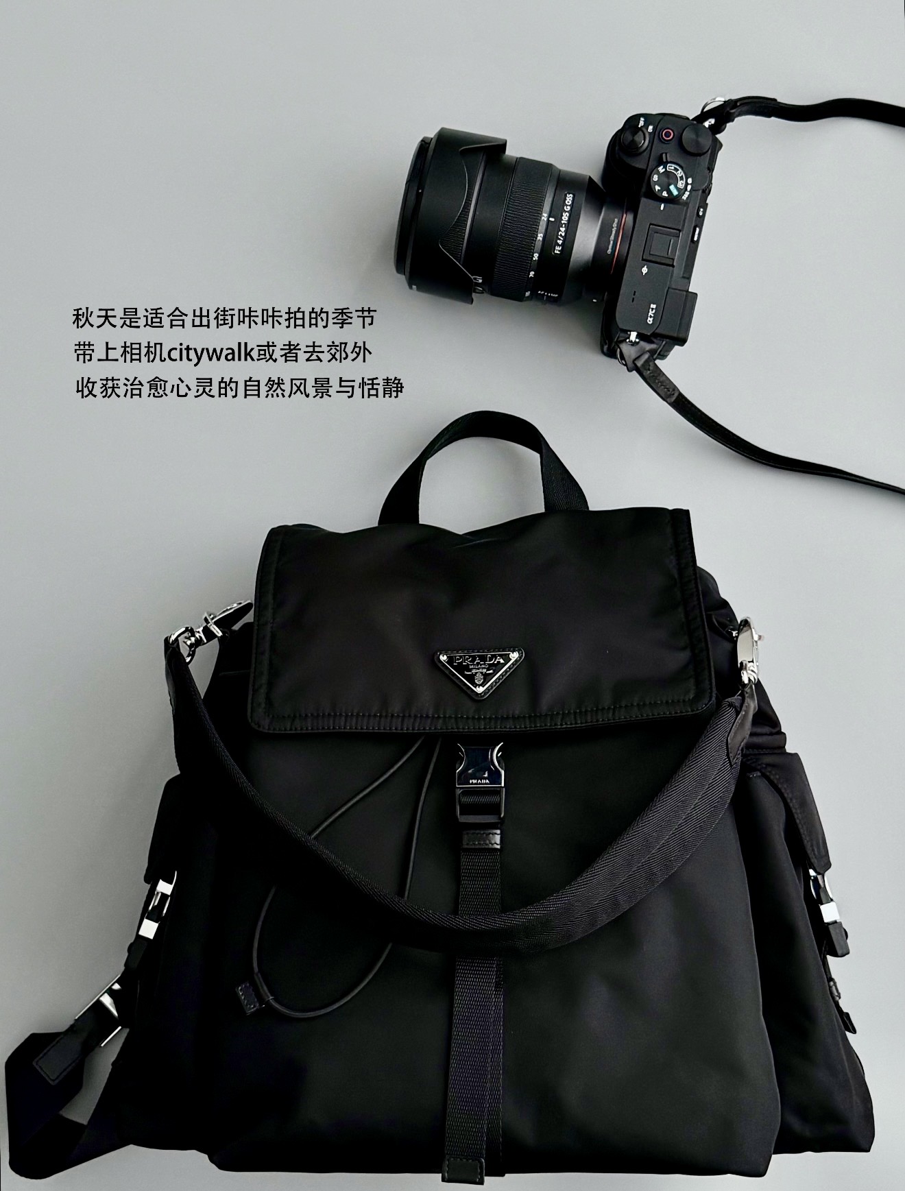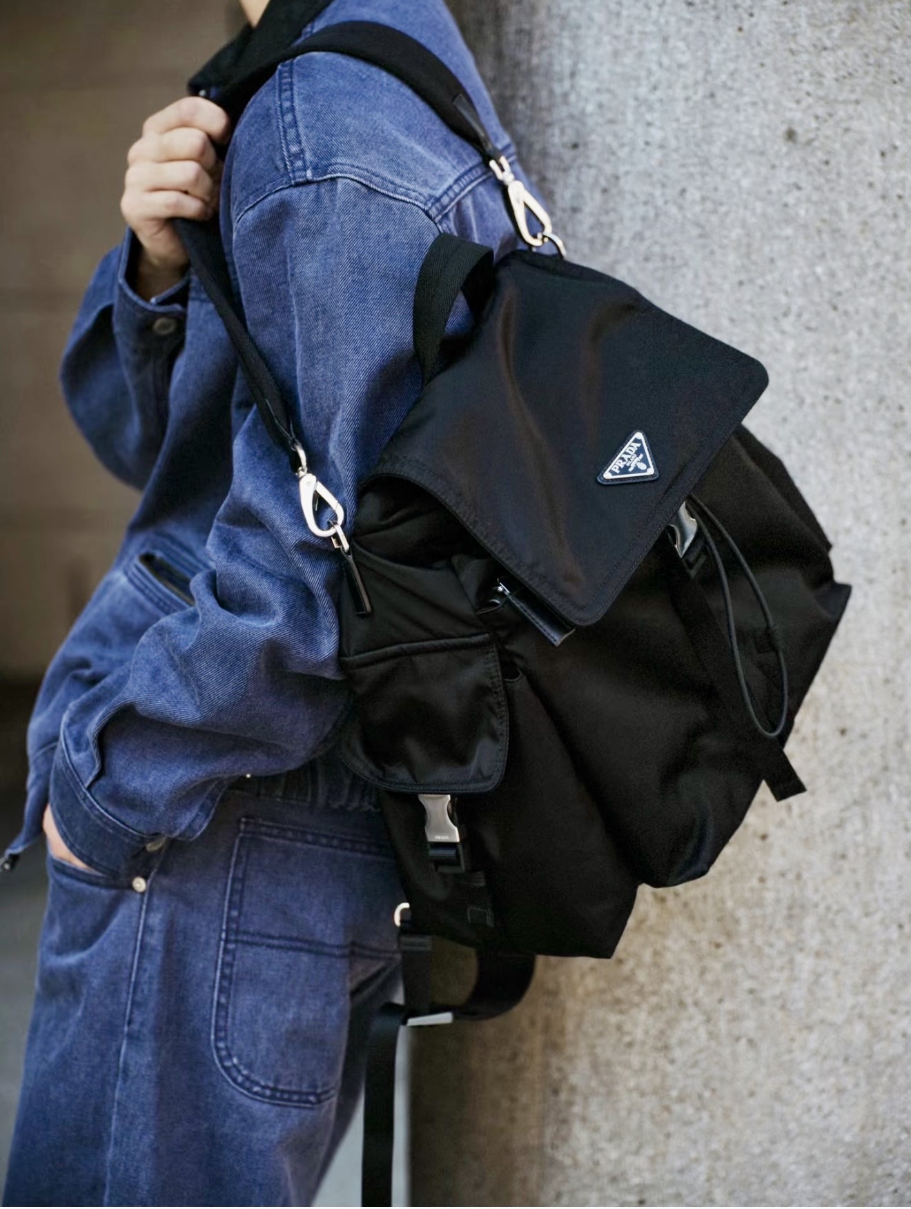 Prada Explore Re-Nylon 雙肩後背包 收納、質感與機能一次到位 黑 37*39*20 cm
