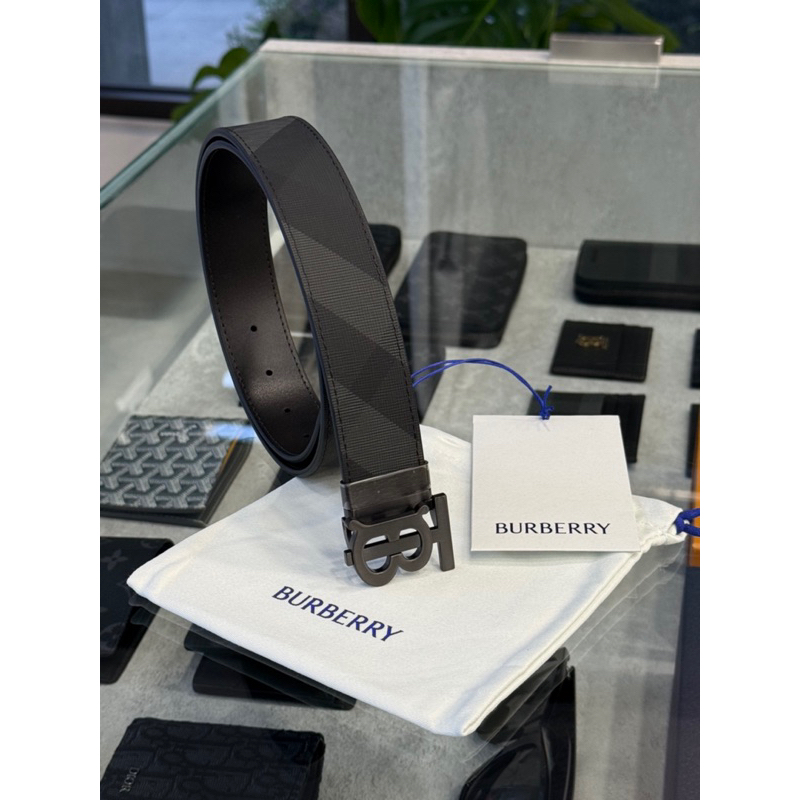 Burberry 經典TB Logo設計 黑格紋、素面 雙面 皮帶