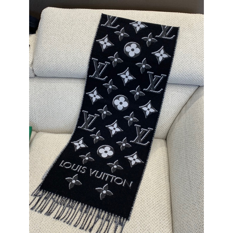 Louis Vuitton LV經典正反雙色搭配滿版Logo設計 雙面可使用 黑灰色 金屬纖維 圍巾