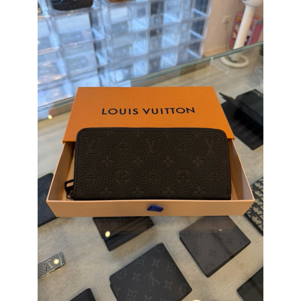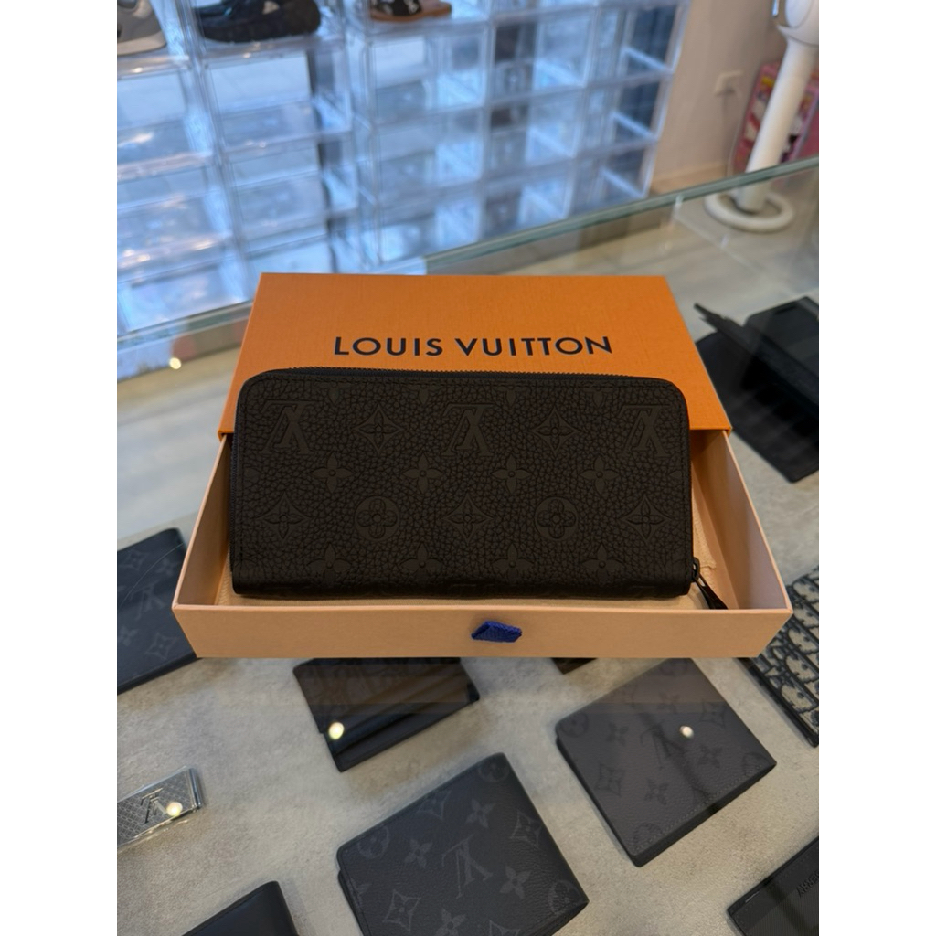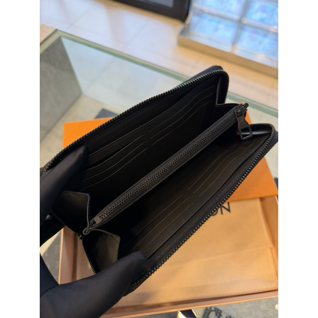 Louis Vuitton LV經典滿版黑色壓紋Logo設計 男生 男款 拉鍊 皮夾 長夾