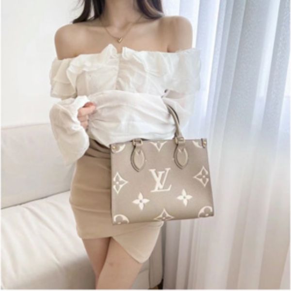 ouis Vuitton LV OnTheGo PM 奶茶色 手提 側背包